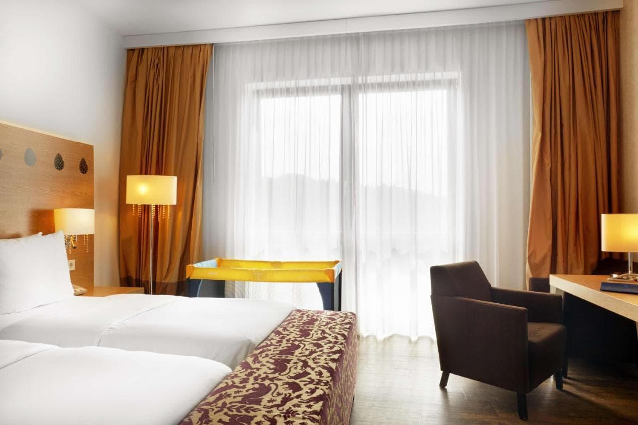 Елегантні просторі номери оснащені кондиціонером та оформлені в сучасному стилі з використанням теплої гами кольорів. У кожному номері є телевізор з плоским екраном, міні-бар і власна ванна кімната з халатами і феном. З балкона відкривається краєвид на мальовничі Карпатські гори.