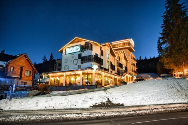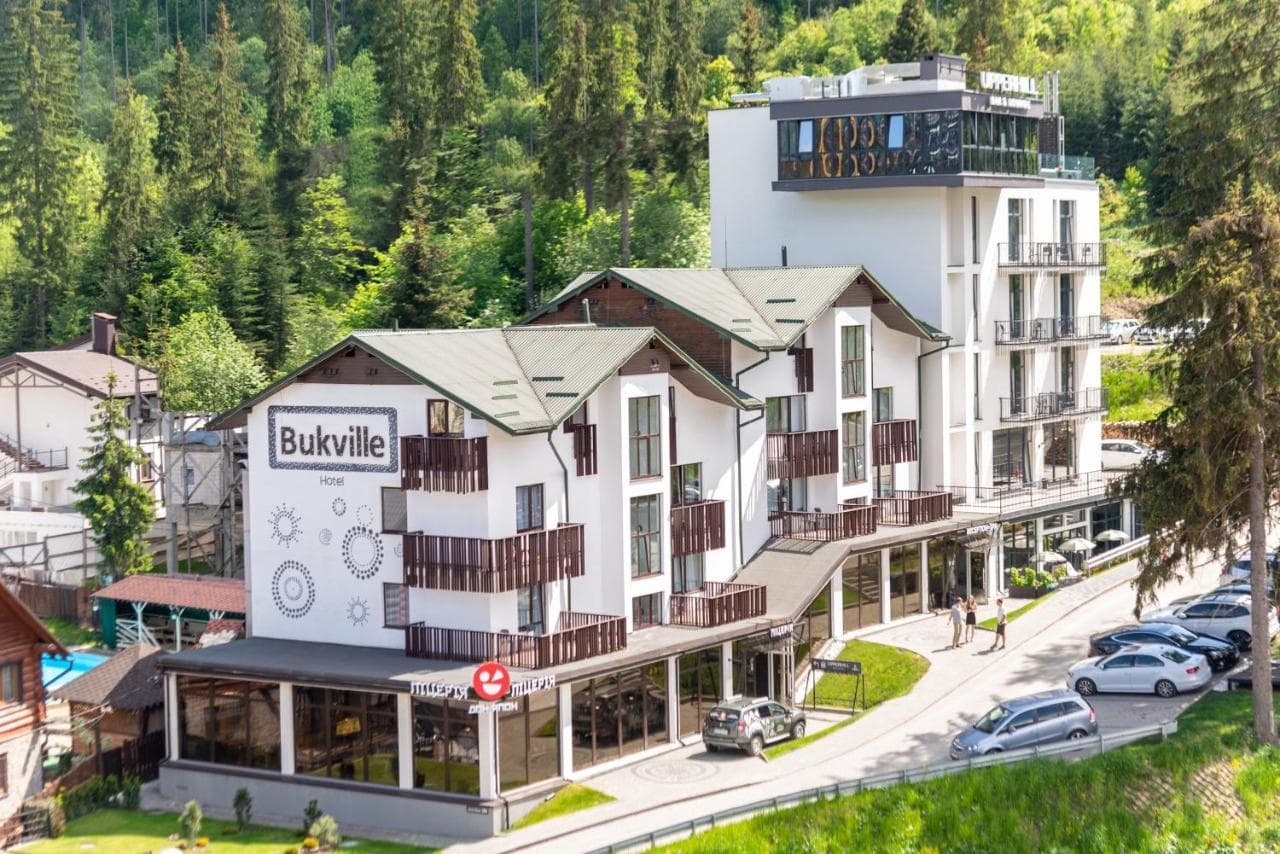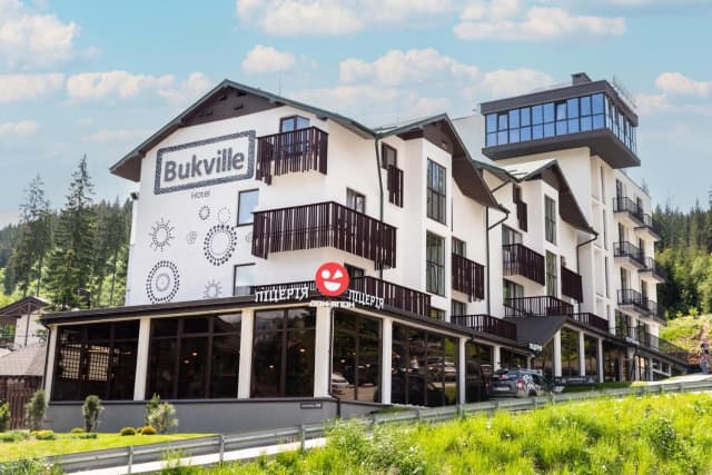 «Bukville Hotel & SPA» – це сучасний готель, що розташований у 10 хвилинах від центру Буковеля та за 350 метрів від підйомника 1R. На першому поверсі готелю знаходиться ресторан Don Yapon, а на терасі шостого поверху lounge-bar Upper Hill. Ви можете потрапити з номеру у заклади просто скориставшись ліфтом, або ж замовити страви італійської та японської кухні просто в номер! Розпочати ранок з плавання у басейні, зустріти полудень на лежаку у дворику, завершити вечір у джакузі з видом на гори – це все про SPA-зону у Bukville!