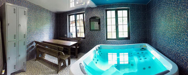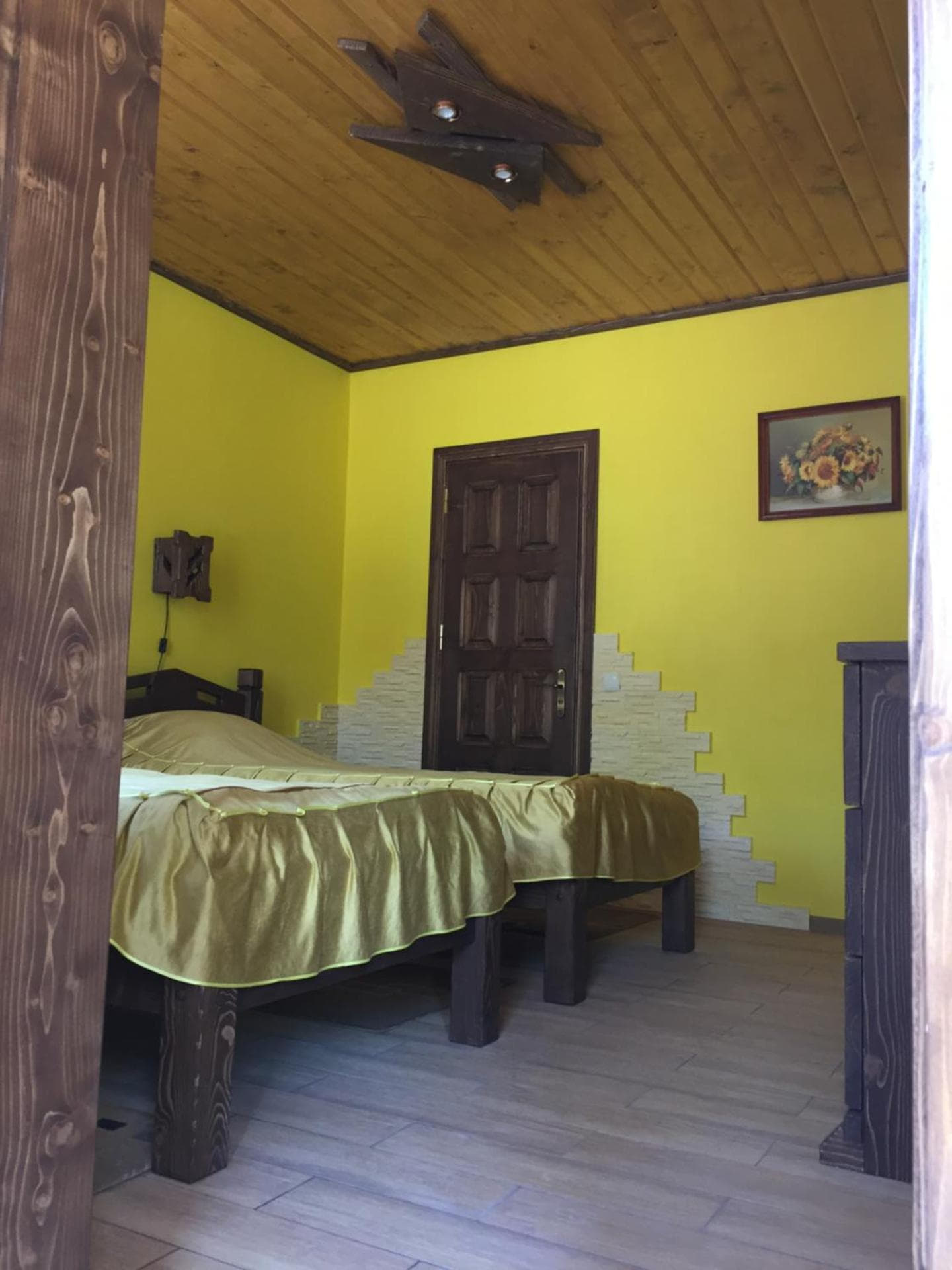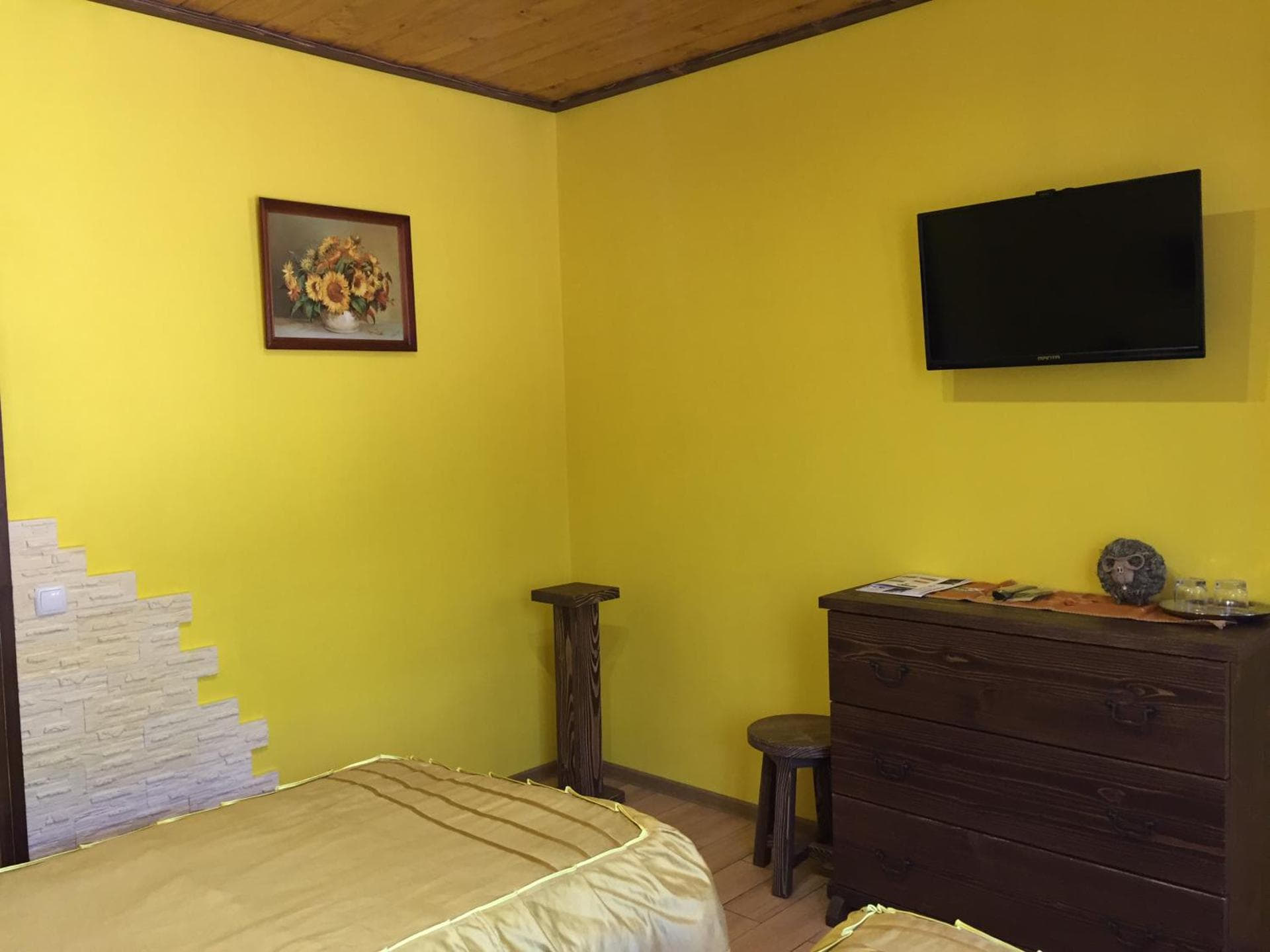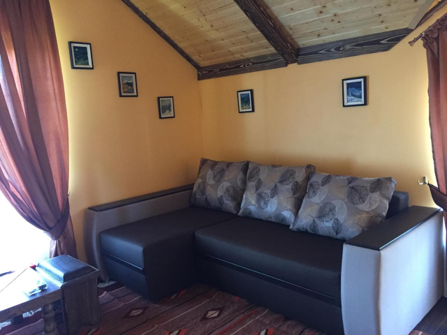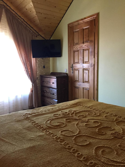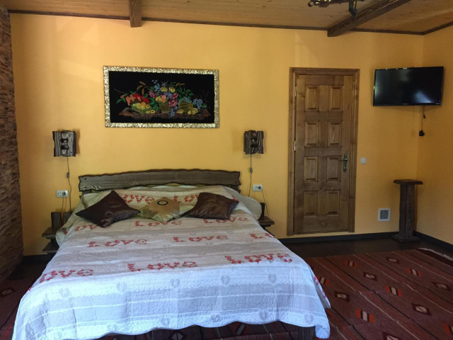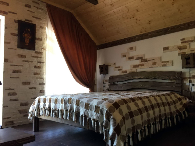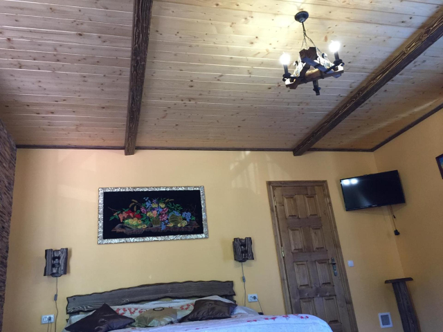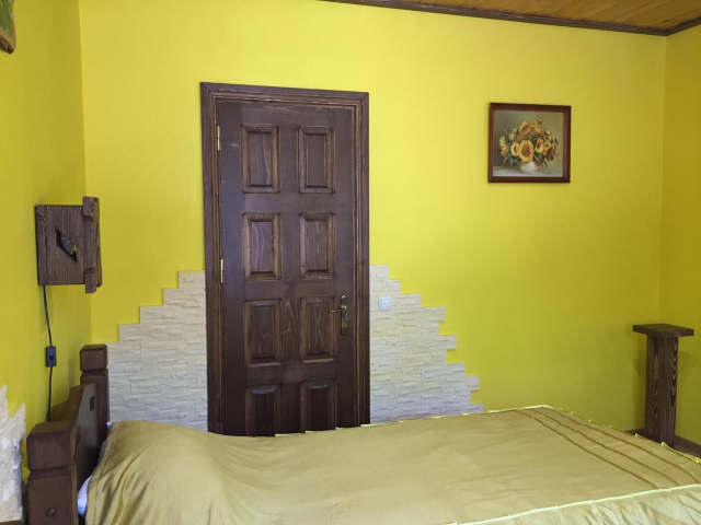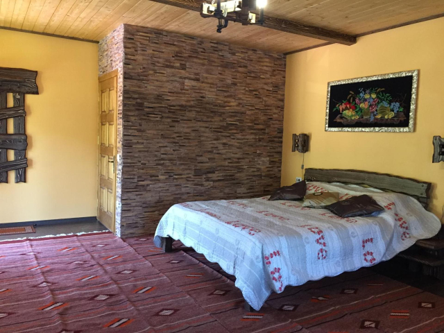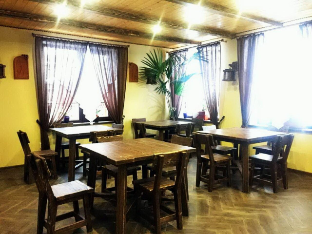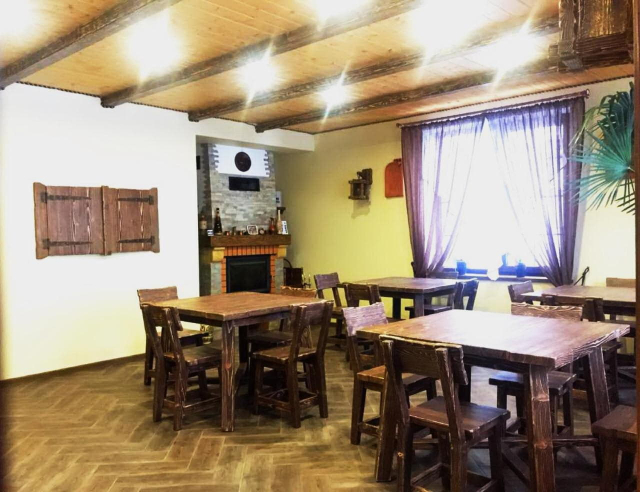 На першому поверсі готелю облаштований камінний зал зі столом та лавами для спільного відпочинку гостей. Тут також розміщені два двомісні номери з окремими входами з подвір’я. Кожен номер обладнаний двома односпальними ліжками, меблями для зберігання речей, LED-телевізором та власним санвузлом із душовою кабіною та феном.