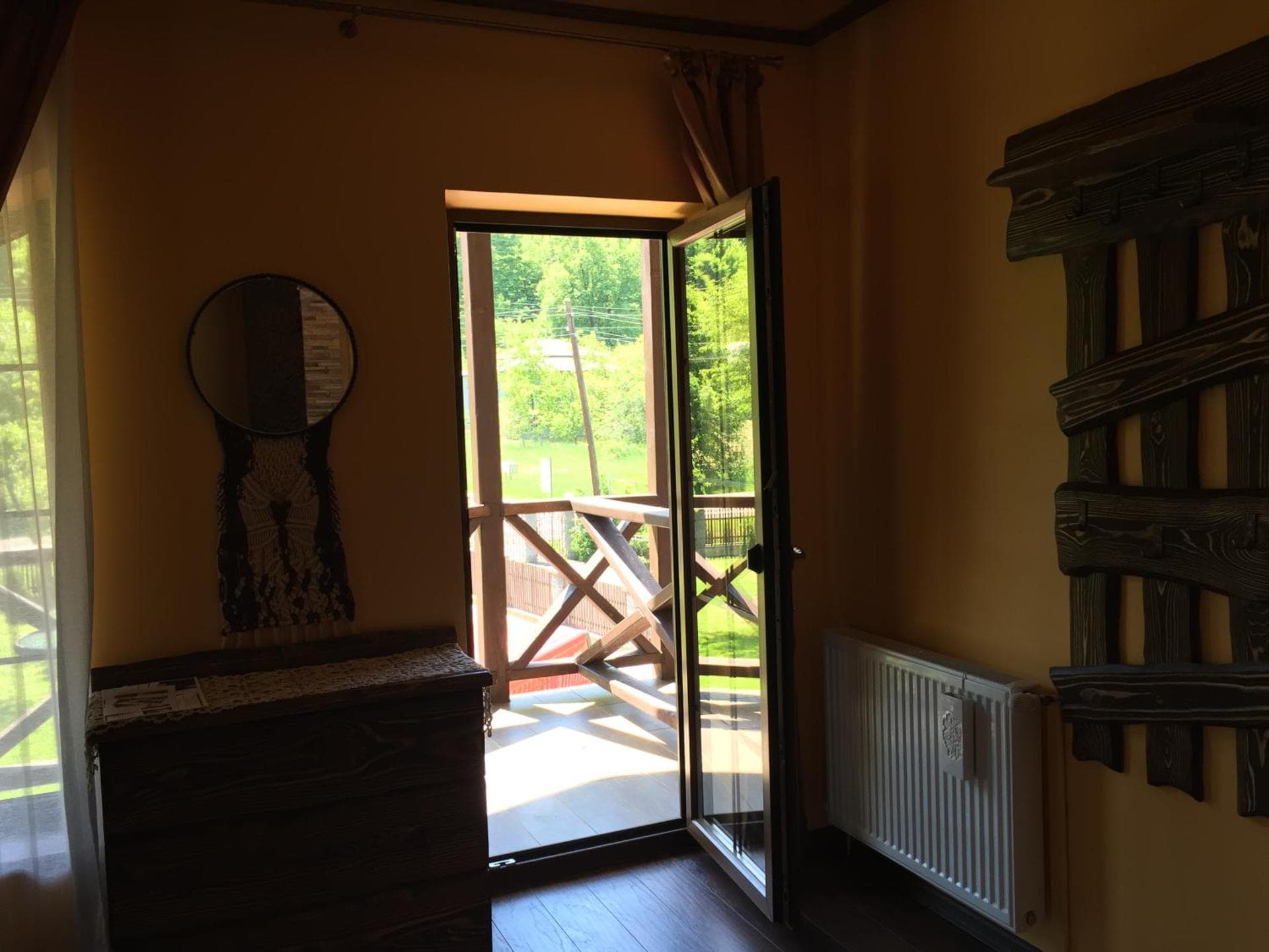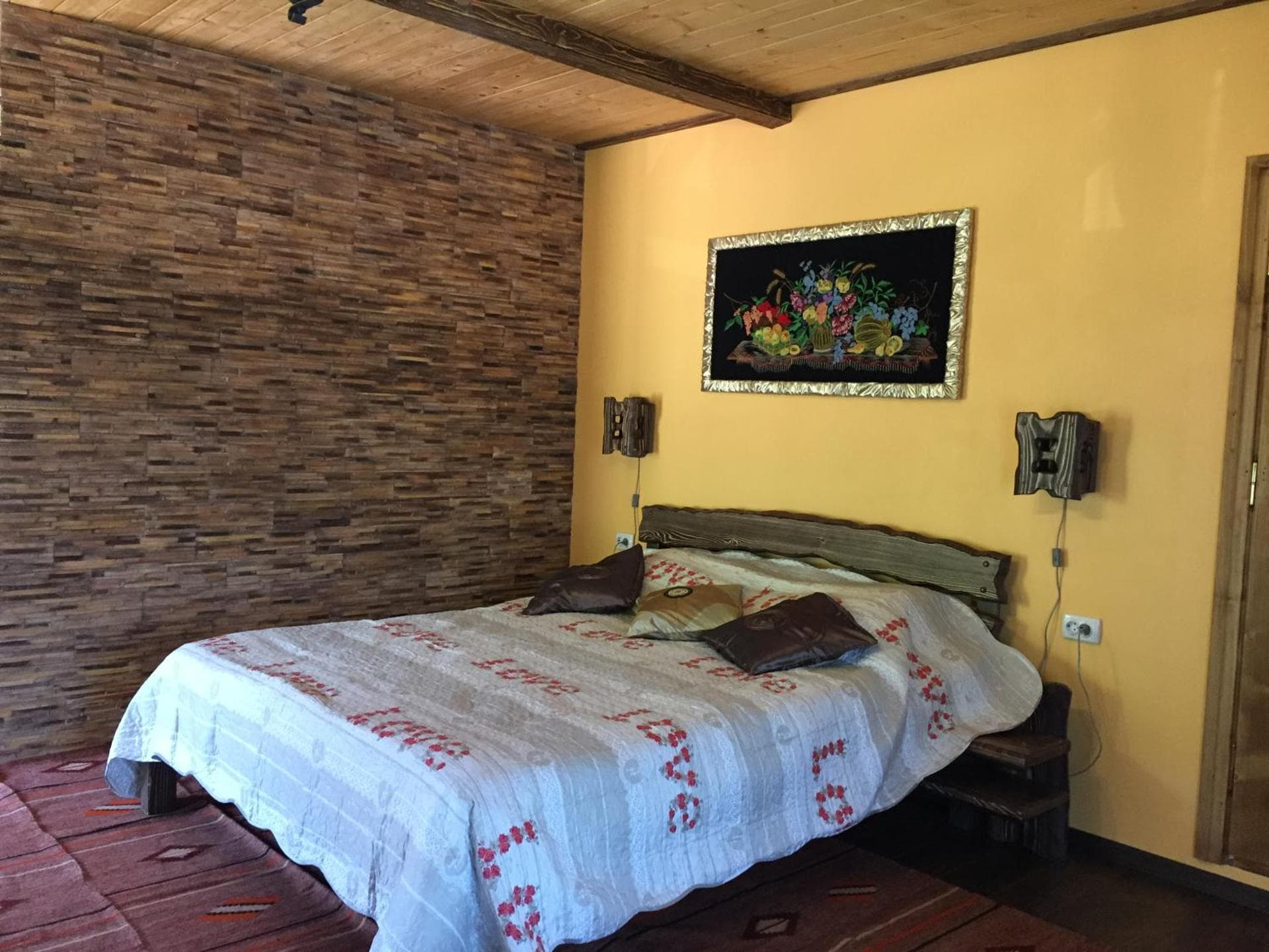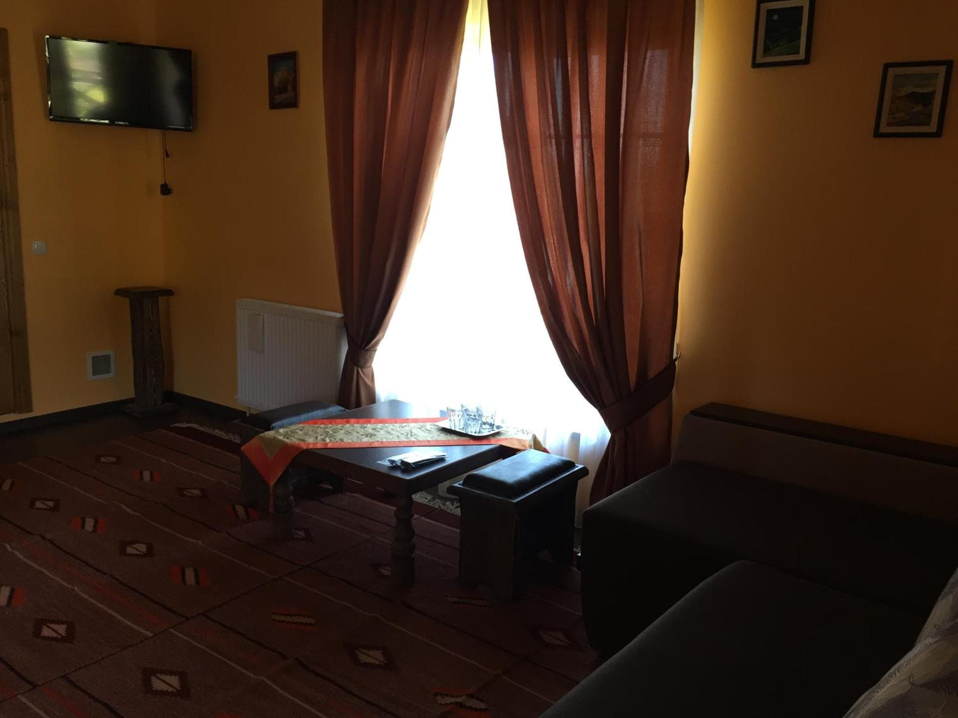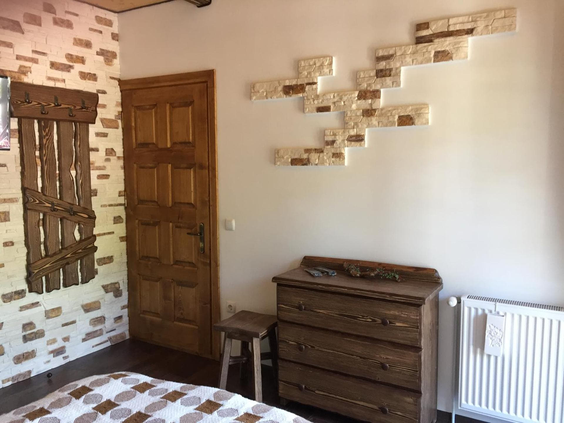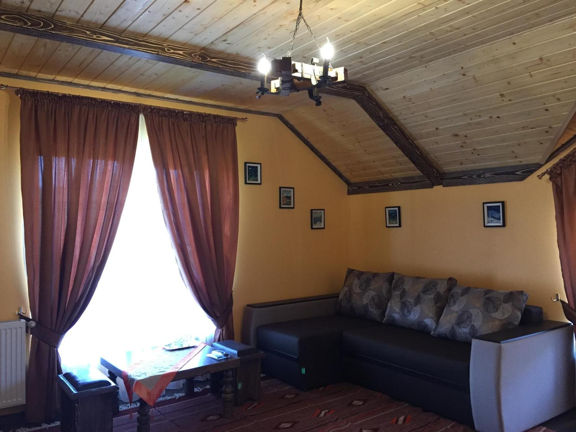 На першому поверсі готелю облаштований камінний зал зі столом та лавами для спільного відпочинку гостей. Тут також розміщені два двомісні номери з окремими входами з подвір’я. Кожен номер обладнаний двома односпальними ліжками, меблями для зберігання речей, LED-телевізором та власним санвузлом із душовою кабіною та феном.