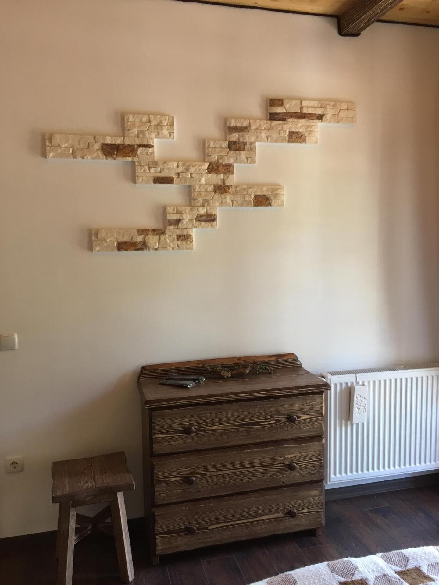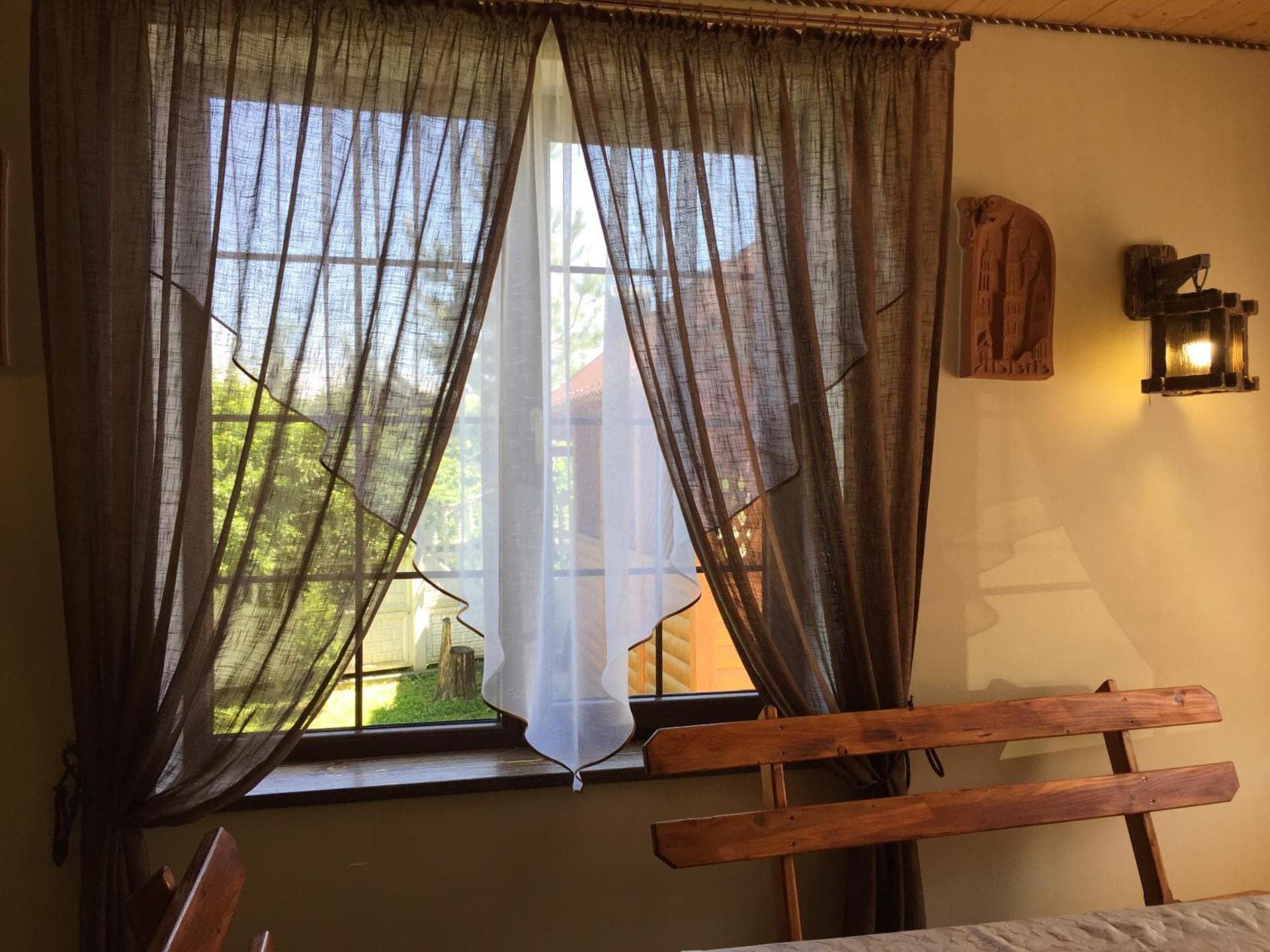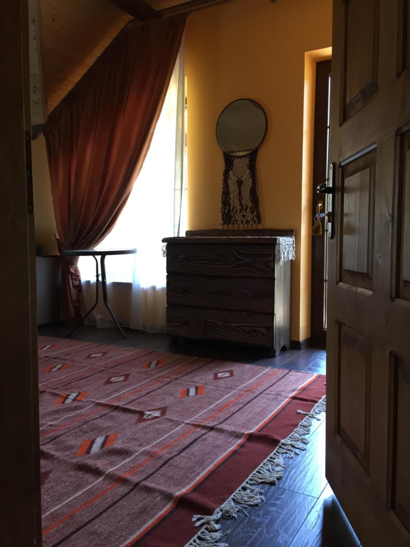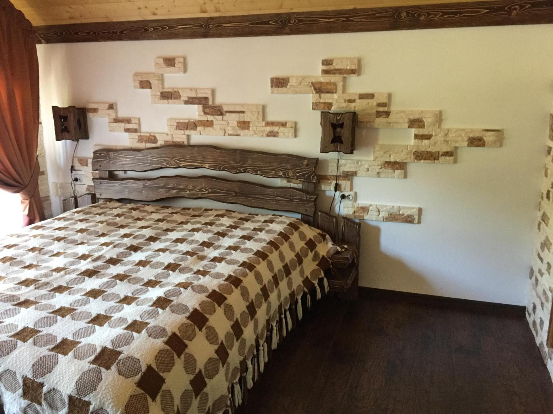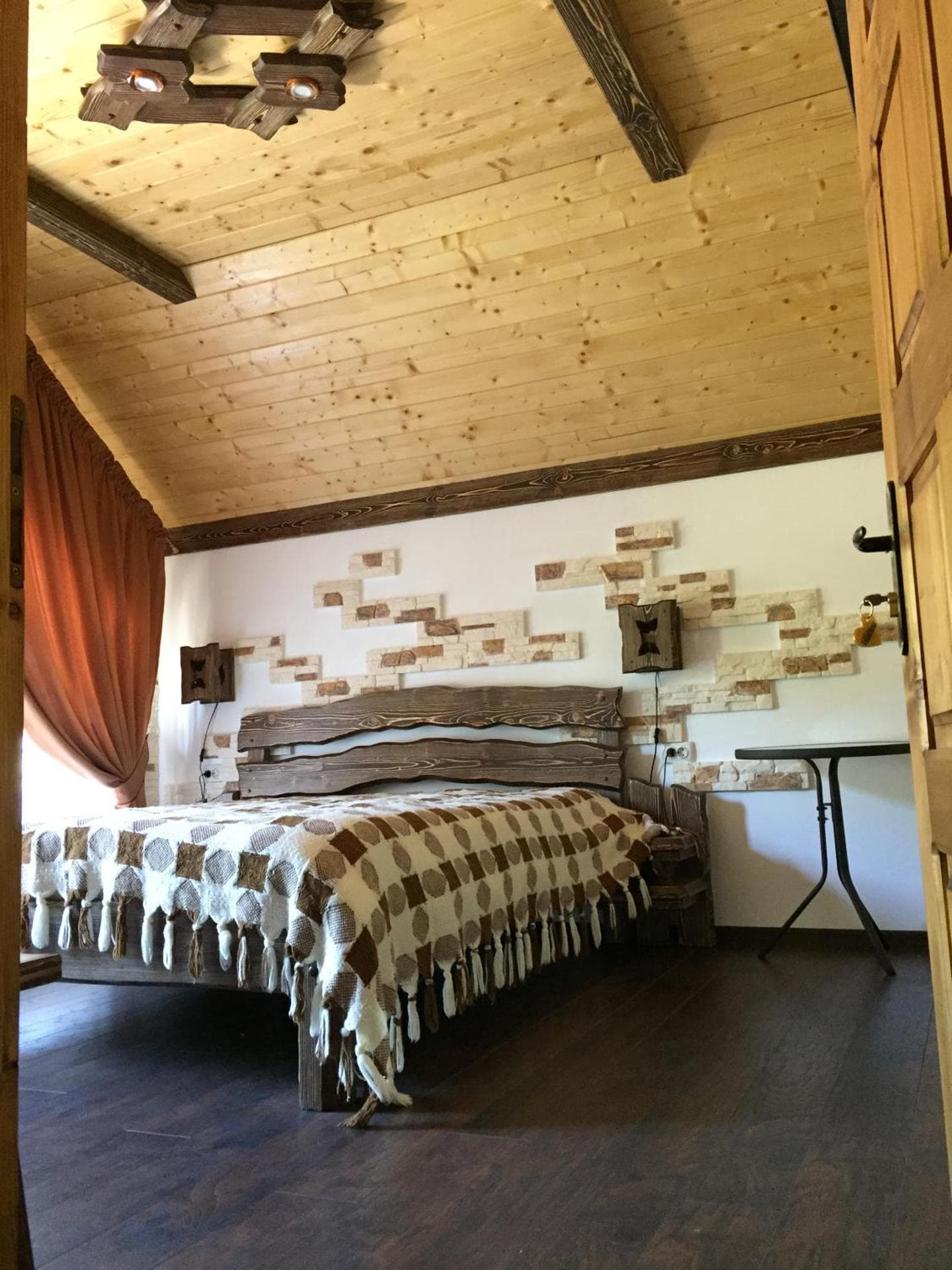 На першому поверсі готелю облаштований камінний зал зі столом та лавами для спільного відпочинку гостей. Тут також розміщені два двомісні номери з окремими входами з подвір’я. Кожен номер обладнаний двома односпальними ліжками, меблями для зберігання речей, LED-телевізором та власним санвузлом із душовою кабіною та феном.