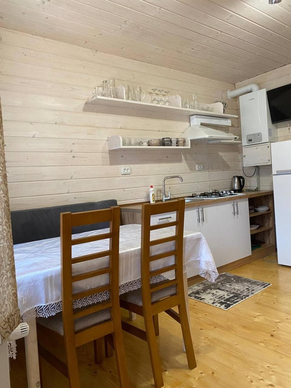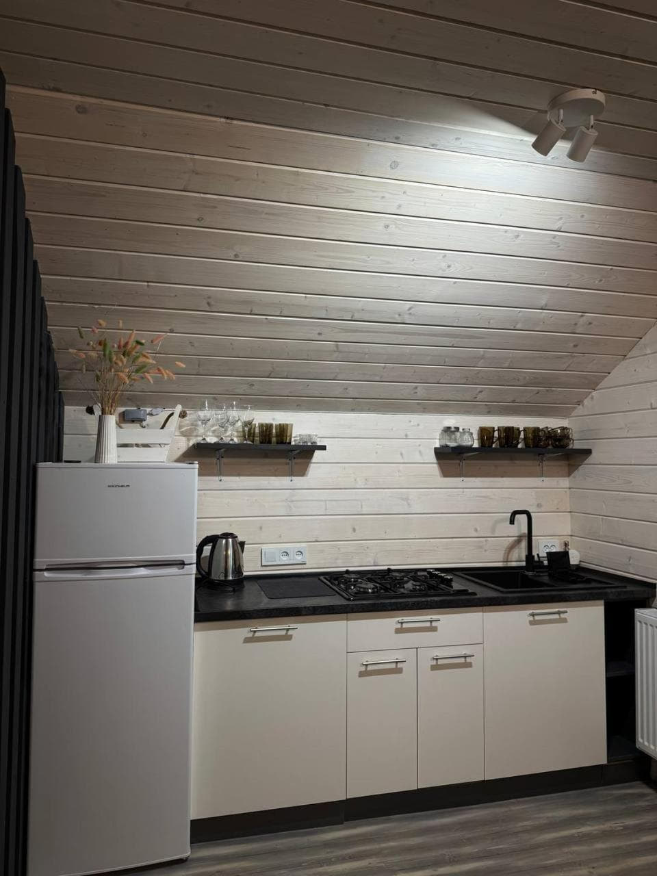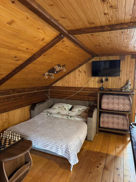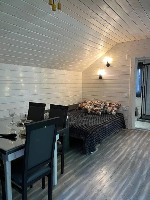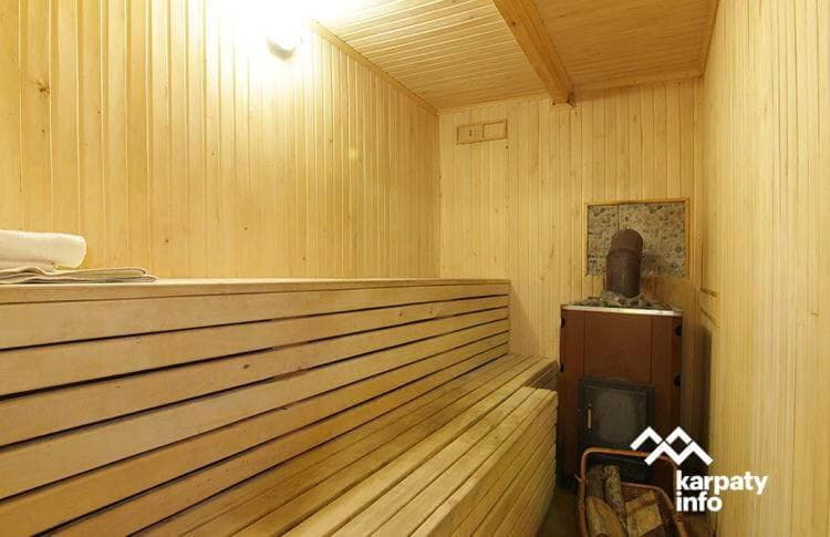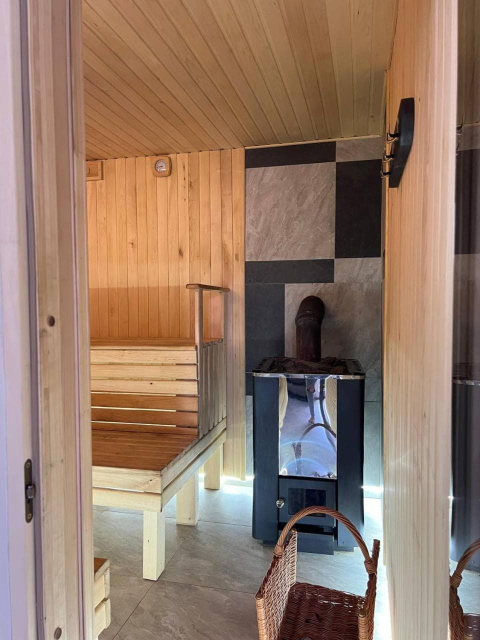 Також доступний двоповерховий котедж із сауною на 4–6 місць. На першому поверсі знаходиться дров’яна сауна з кімнатою відпочинку, кухня та роздільний санвузол. Кімнату відпочинку можна орендувати окремо як двомісний номер. На другому поверсі, з окремим входом з подвір’я, розміщений номер-студіо з балконом, кухонним кутком і повним санвузлом.