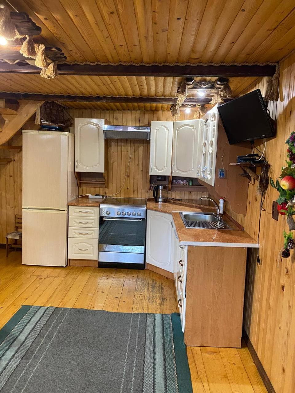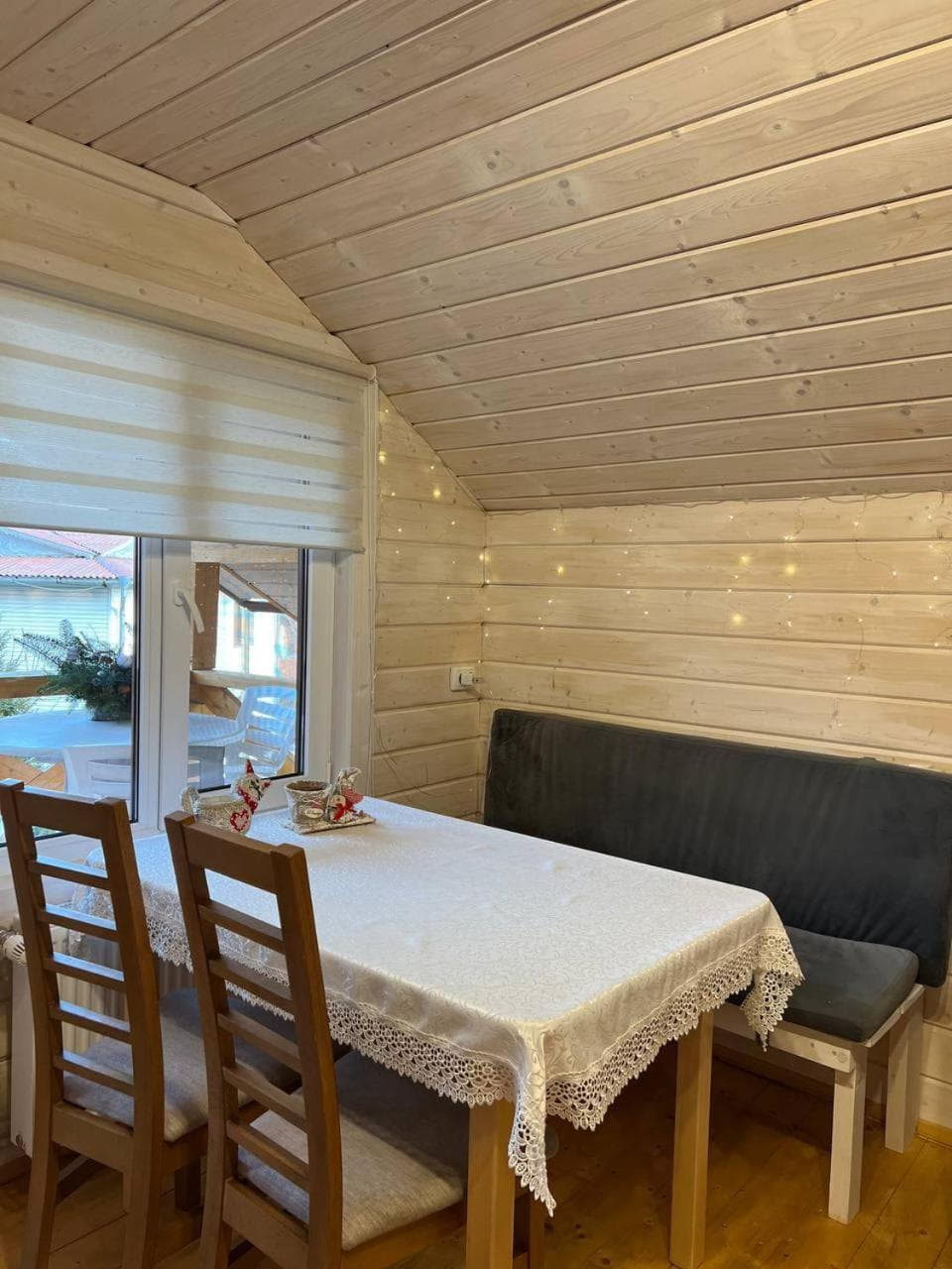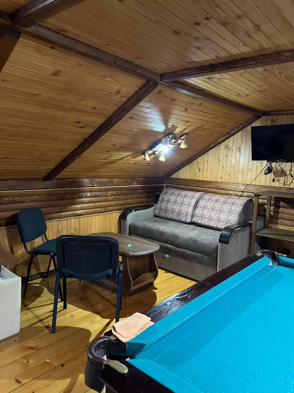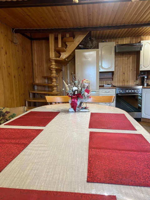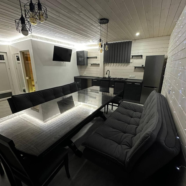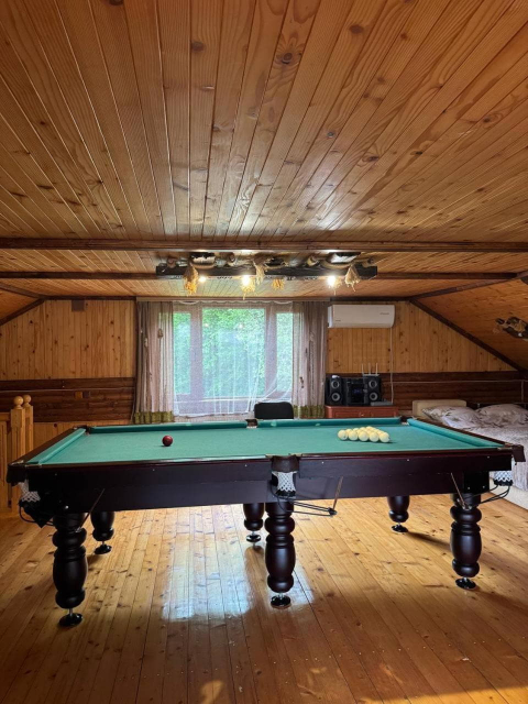 На території є дворівневий котедж на 10 місць із сауною та терасою. На першому рівні облаштовано кухню-вітальню з повним набором побутової техніки та посуду, сауну з контрастним басейном і діжкою для обливання, а також роздільний санвузол. На другому рівні розташований просторий чотиримісний номер із більярдним столом та телевізором і два двомісні номери з двоспальними ліжками.