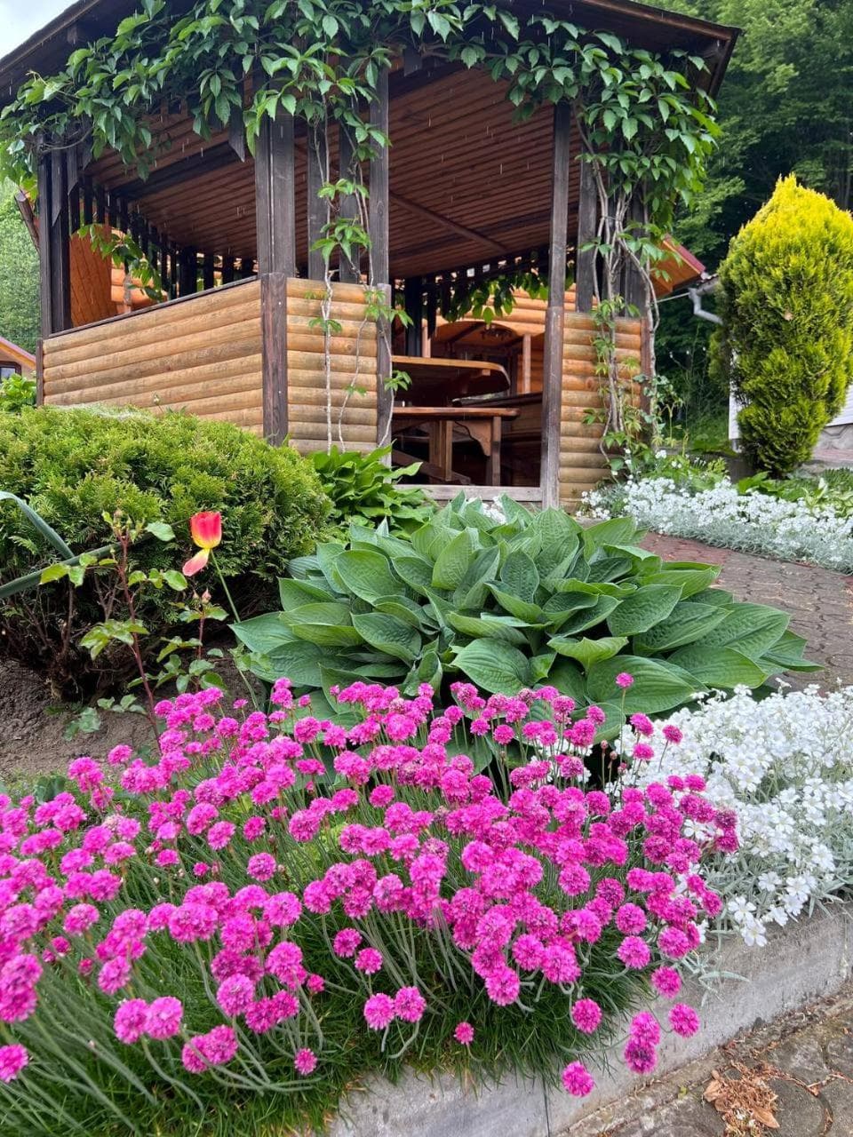 У вартість проживання входить користування паркінгом, Wi-Fi, супутниковим телебаченням, пральною машиною, праскою та феном, а також мангалом з дровами. Передбачене зберігання багажу, виклик таксі, прибирання номерів за потребою, зміна постелі та рушників один раз на п’ять днів. За додаткову оплату гості можуть скористатися дров’яною сауною, оздоровчим чаном, транспортними послугами та організованими екскурсіями. На території доступні прокат велосипедів, настільний теніс, більярд, тренажери, риболовля у власному ставку, а також походи в гори, збирання грибів і ягід та катання на конях — за домовленістю.