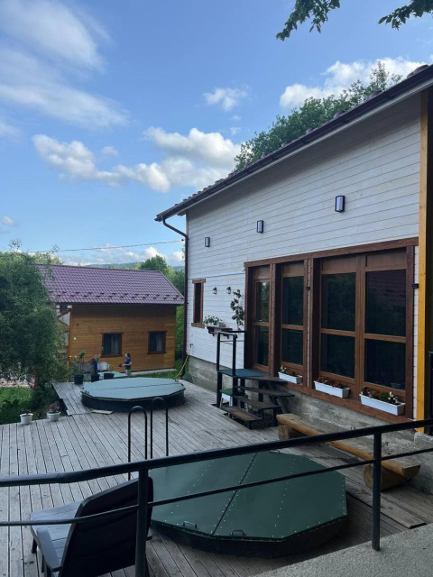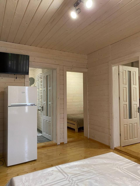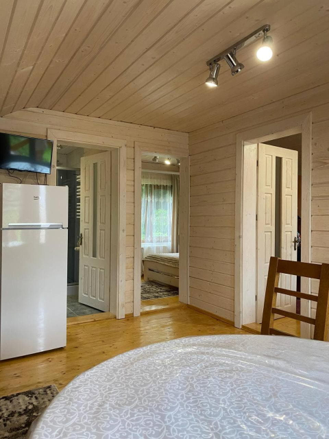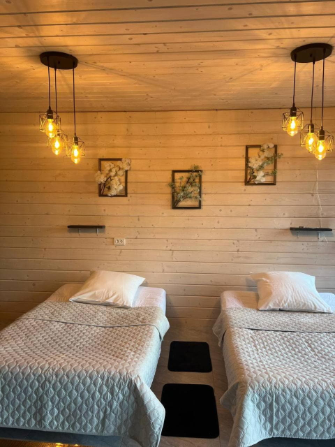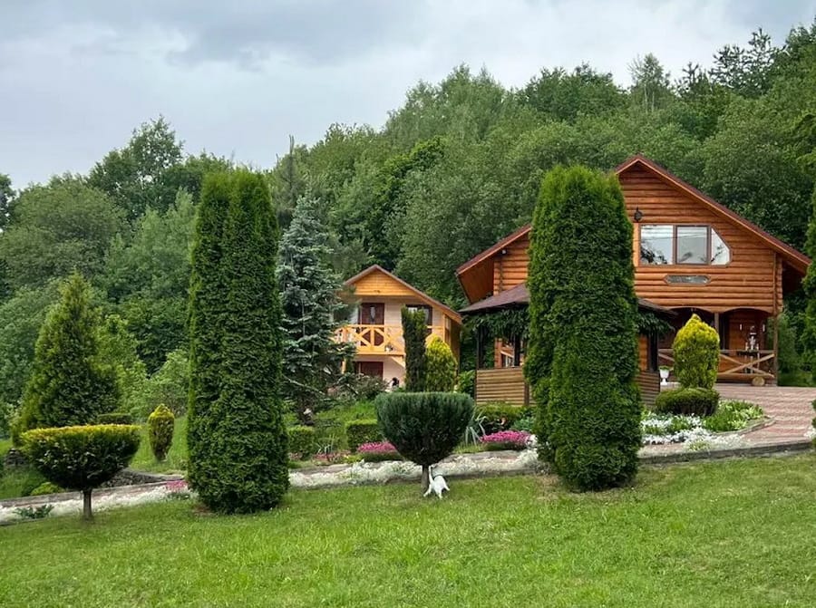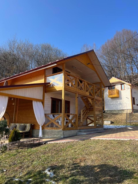 Для гостей доступні кілька дерев’яних котеджів різної місткості. Дворівневий котедж на 10 місць поєднує кухню-вітальню з повним набором побутової техніки, сауну з контрастним басейном та діжкою для обливання, а також комфортні спальні на другому рівні, включно з просторим чотиримісним номером із більярдом. Окремо пропонується двоповерховий котедж із дров’яною сауною на 4–6 місць, де частину приміщень можна орендувати як автономні номери. Ще один котедж розрахований на два незалежні номери по 4 місця, кожен із терасою, кухнею-вітальнею та санвузлом.