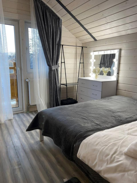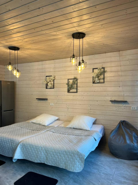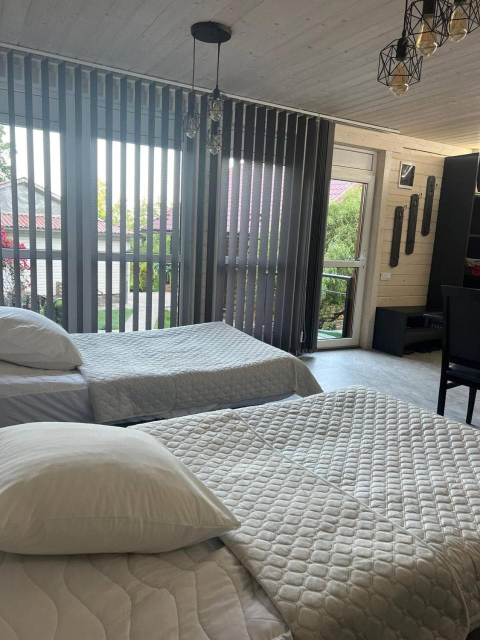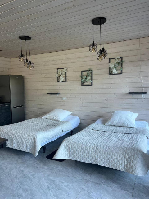 Окремо пропонується двоповерховий котедж на два автономні номери, кожен розрахований на 4 особи. На кожному поверсі — двокімнатний номер із терасою, кухнею-вітальнею, двома спальнями з двоспальними ліжками та санвузлом.