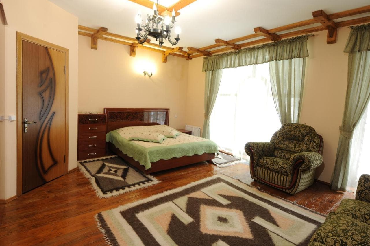 Люкс двокімнатний. Двоспальне та односпальні ліжка, комод, телевізор, балкон, санвузол (туалет, умивальник, душова кабіна, засоби особистої гігієни, халати, тапочки). Додаткові місця - 2 розкладні дивани.