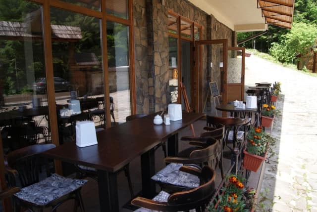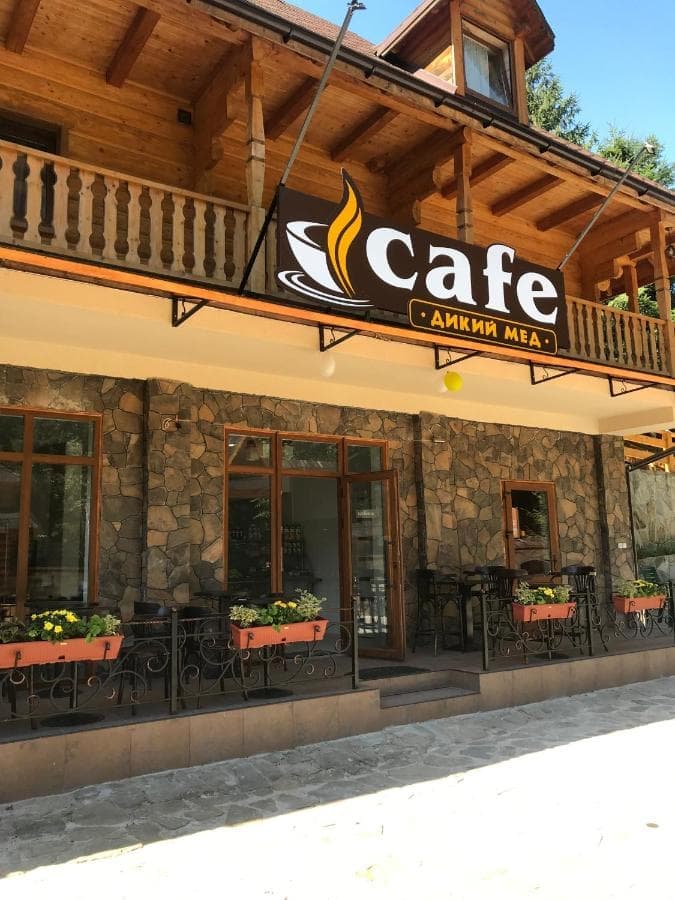Також на території садиби «Дикий мед» знаходиться колиба, яка стала втіленням найкращих традицій гуцулської кухні. Затишний зал зустрічає гостей теплом вогнища і оригінальними стравами. Масивні стіни, добротні дерев’яні столи і лавки, старовинні предмети народного побуту створюють відчуття особливого затишку.
