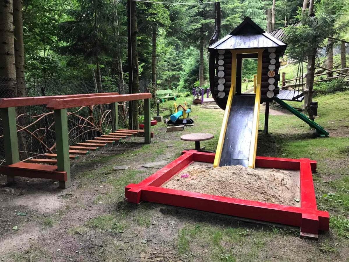 Для дітей в садибі створена спеціальна казкова лісова галявина, де розміщена “хатинка на курячій ніжці”, гойдалки і ще багато атракціонів. Діти з батьками мають можливість підкорювати гірські вершини, побачити величний водоспад “Гук”, відвідати вольєрне господарство. Відпочинок дітей в садибі «Дикий мед» буде комфортний, змістовний і захоплюючий.