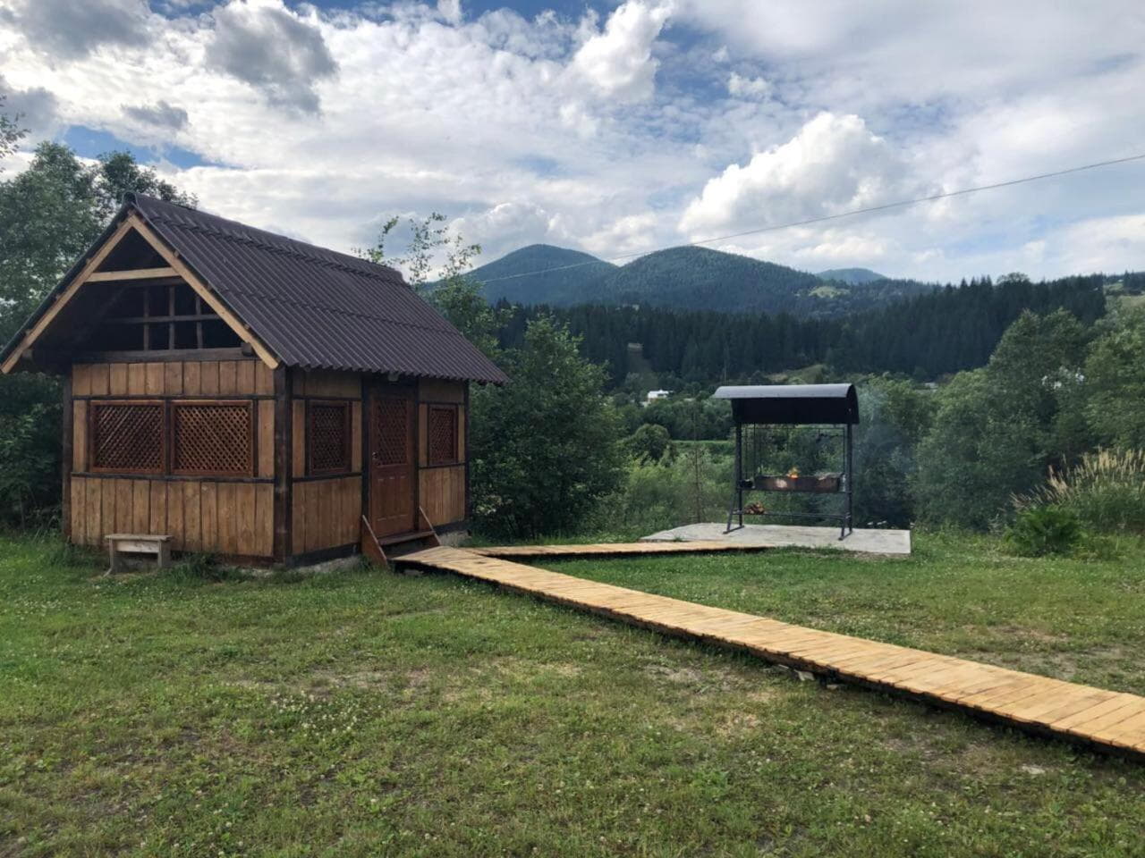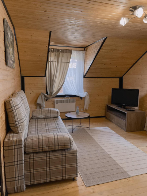 У котеджі — окрема ванна кімната, пральна машина, телевізор із супутниковими каналами, Wi-Fi та опалення.