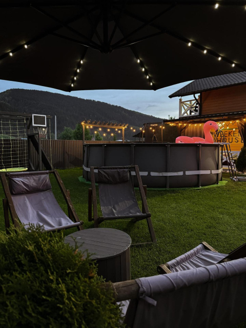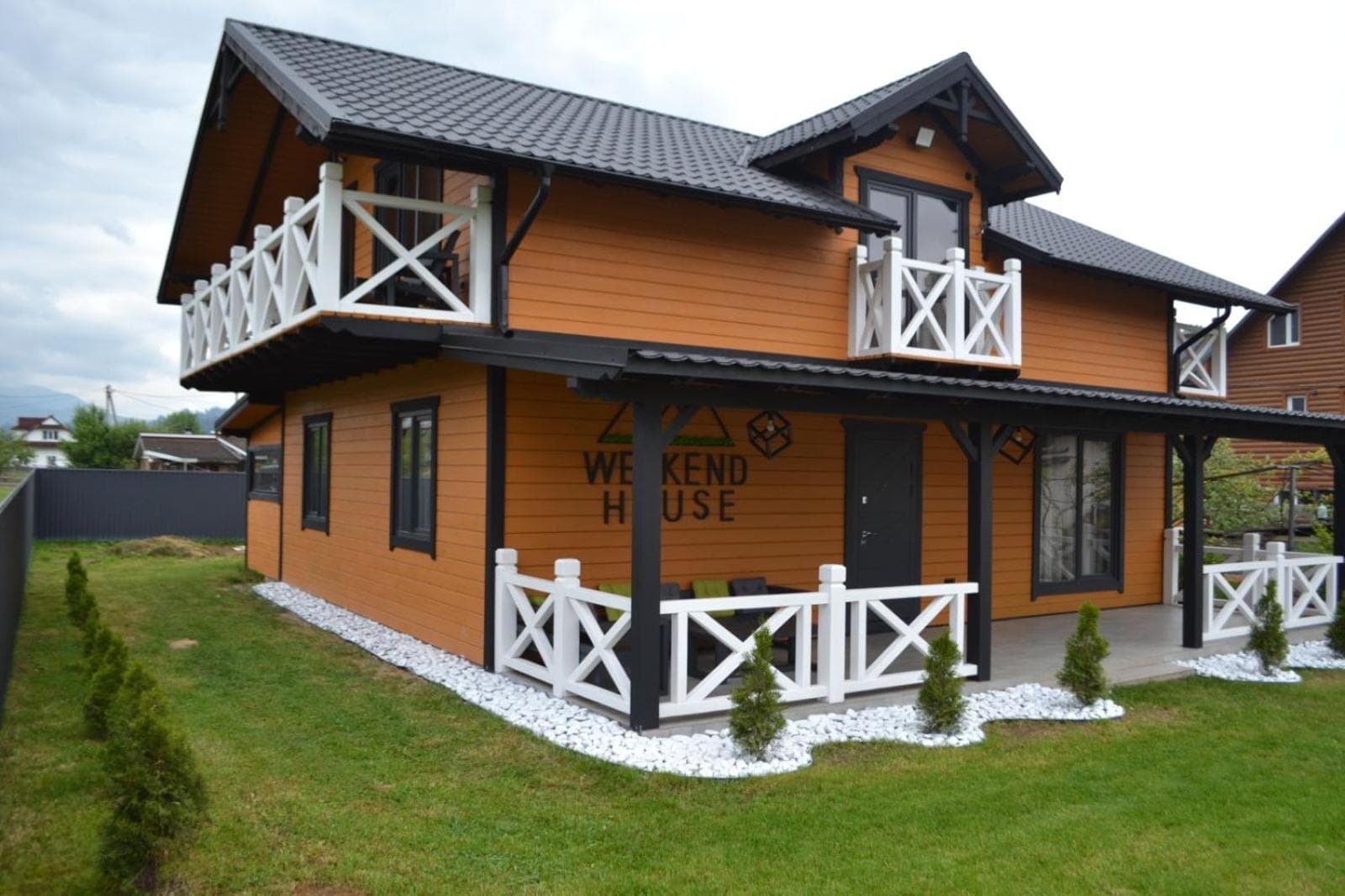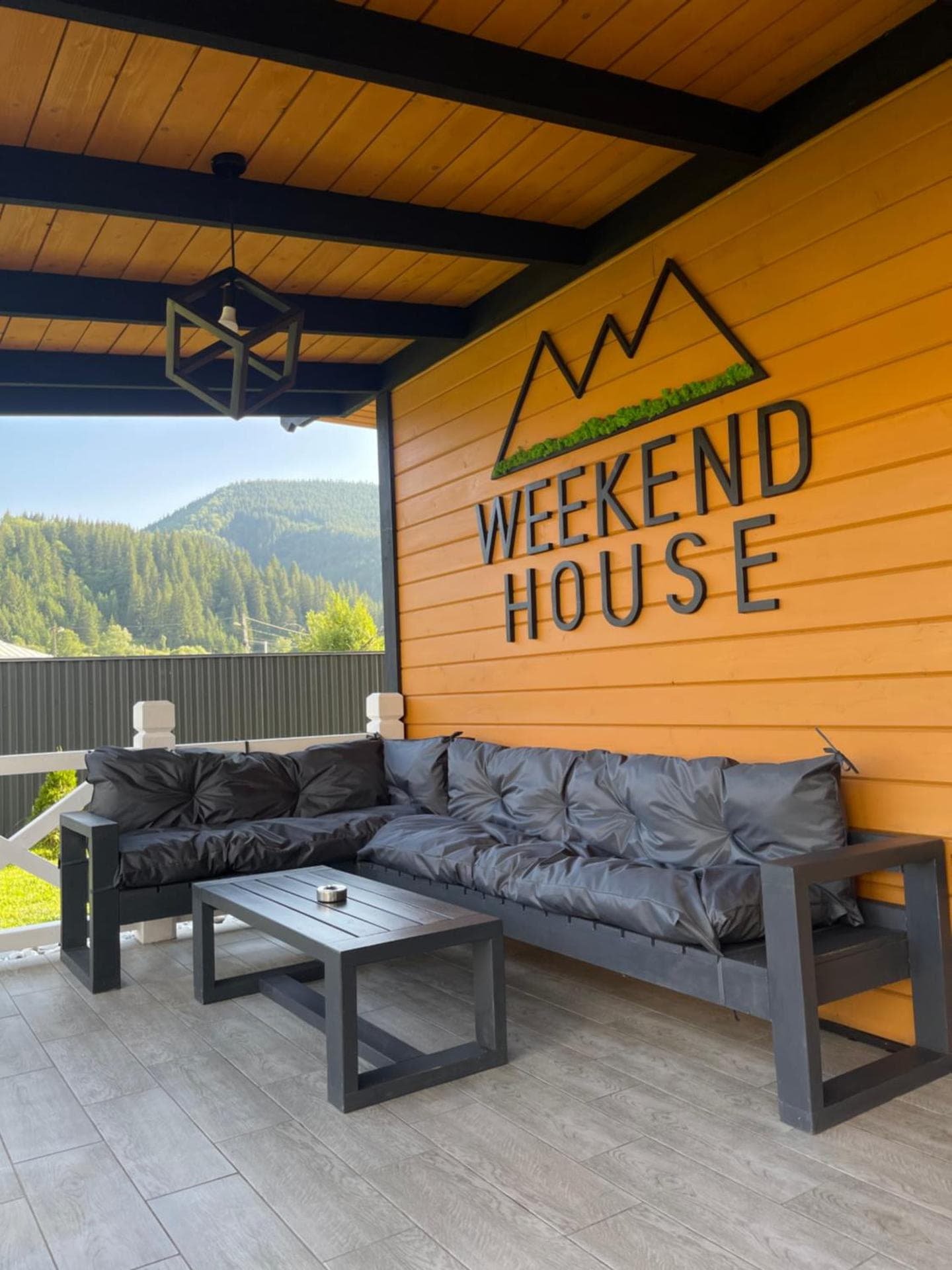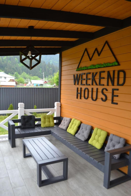 Котедж «Weekend House» розташований у мальовничій Верховині, лише за кілометр від центру селища та 500 метрів від головної дороги. Зручний асфальтований під’їзд, тиха місцевість і близькість до основних об’єктів роблять це помешкання зручним варіантом для сімейного або компанійського відпочинку. На території є тераса, альтанка, мангал, дитячий майданчик, відкритий сезонний басейн і безкоштовна парковка. З території та балконів відкриваються мальовничі краєвиди на гори, а на всій території працює Wi-Fi.