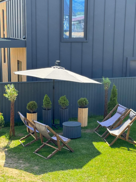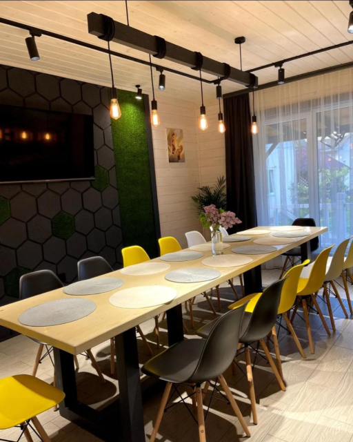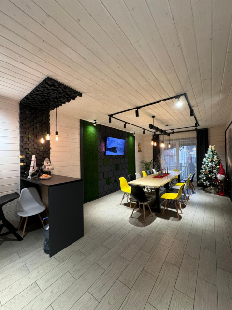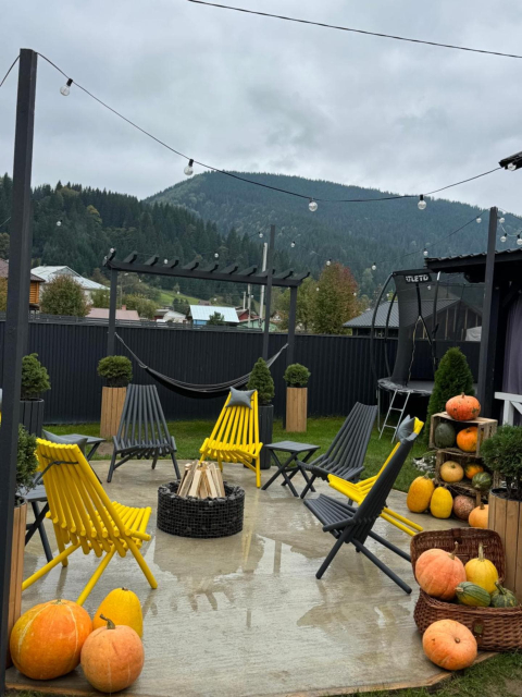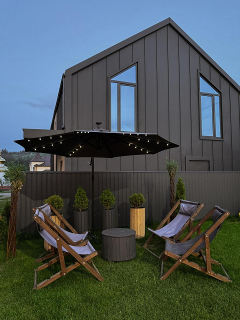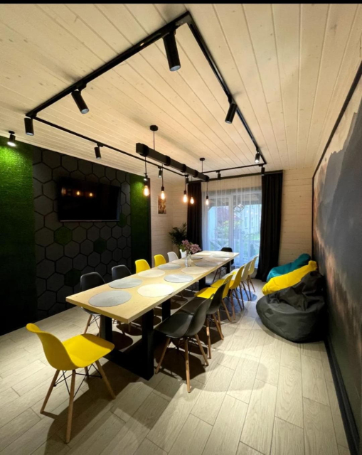 Двоповерховий будинок містить 6 номерів, розрахованих на 10–12 осіб.