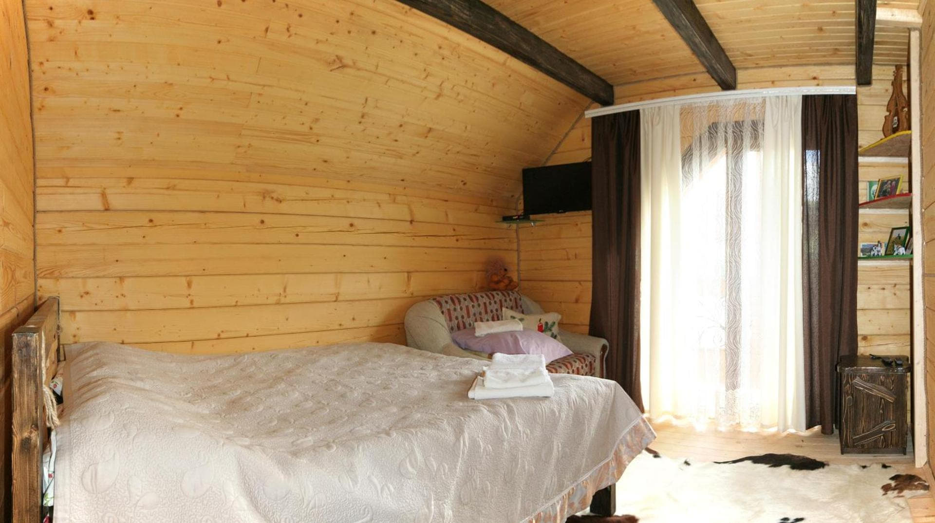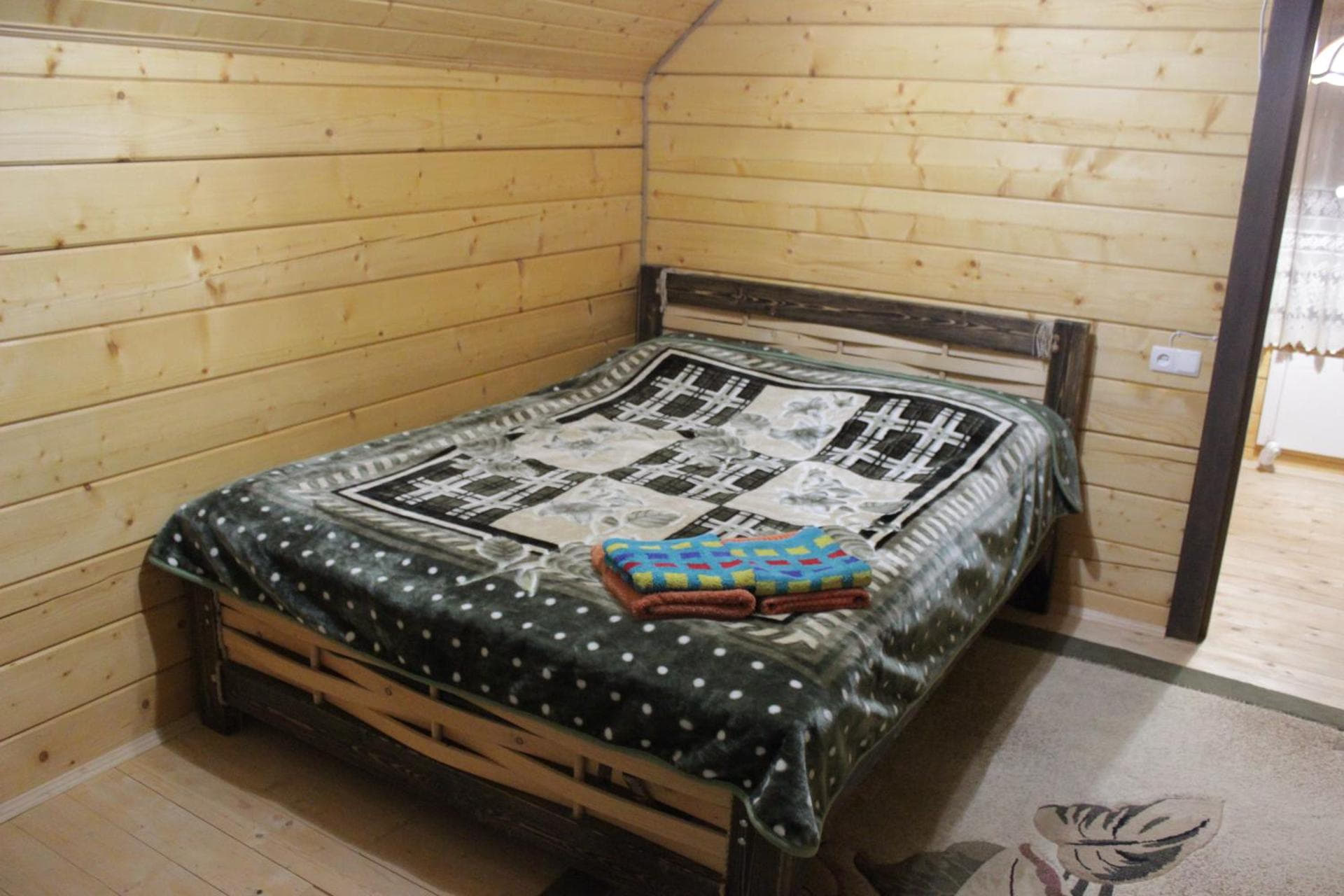 На другому поверсі — хол із шафою для одягу, дві двомісні кімнати з двоспальними ліжками, балконом і телевізором, а також санвузол із душовою кабіною, туалетом та умивальником. У кожній кімнаті можливе додаткове місце — розкладний диван.