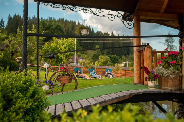 Для гостей облаштовано кухню, де можна самостійно готувати їжу. На території працює гриль-бар, а поруч — кафе та магазин (50 м). Господарі пропонують різноманітні послуги: транспортне обслуговування, прокат велосипедів і квадроциклів, катання на конях, екскурсії, рафтинг, відпочинок на полонині, риболовлю у власному ставку чи на форельнику неподалік. За бажання можна скористатися сауною, чаном або спробувати унікальну апітерапію (сон на вуликах).