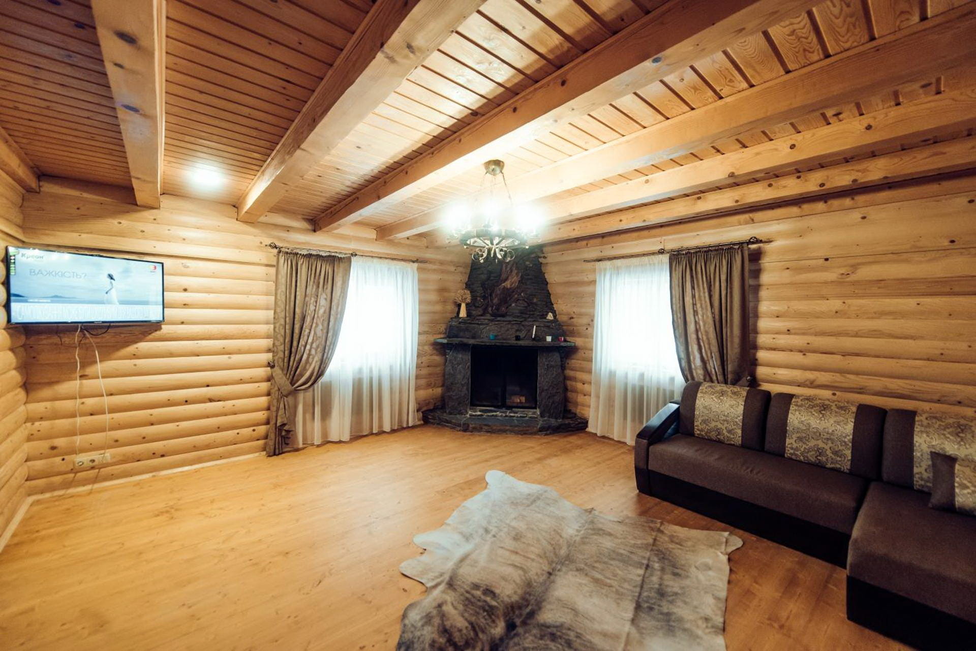 У спальнях передбачені двоспальні ліжка та зручні дивани-ліжка, що дозволяє комфортно розмістити кілька сімей або велику компанію. Вітальні облаштовані м’якими зонами відпочинку, телевізором із плоским екраном і кабельними каналами, а також каміном, який створює особливу атмосферу затишку.