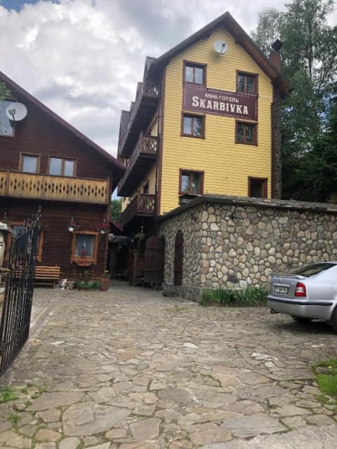 Міні-готель "Скарбівка" розташований в 200 м від траси Татарів-Верховина. До послуг туристів двоповерховий дерев'яний котедж, який одночасно може розмістити до 6 гостей. На першому поверсі котеджу "Скарбівка" знаходиться кухня з усією необхідною технікою і посудом, а також сауна. На другому поверсі котеджу до послуг туристів - дві спальні і вітальня. Кожна кімната обладнана двоспальним ліжком і шафою для зберігання речей. Санвузол загальний на поверсі. Подача гарячої та холодної води здійснюється цілодобово.