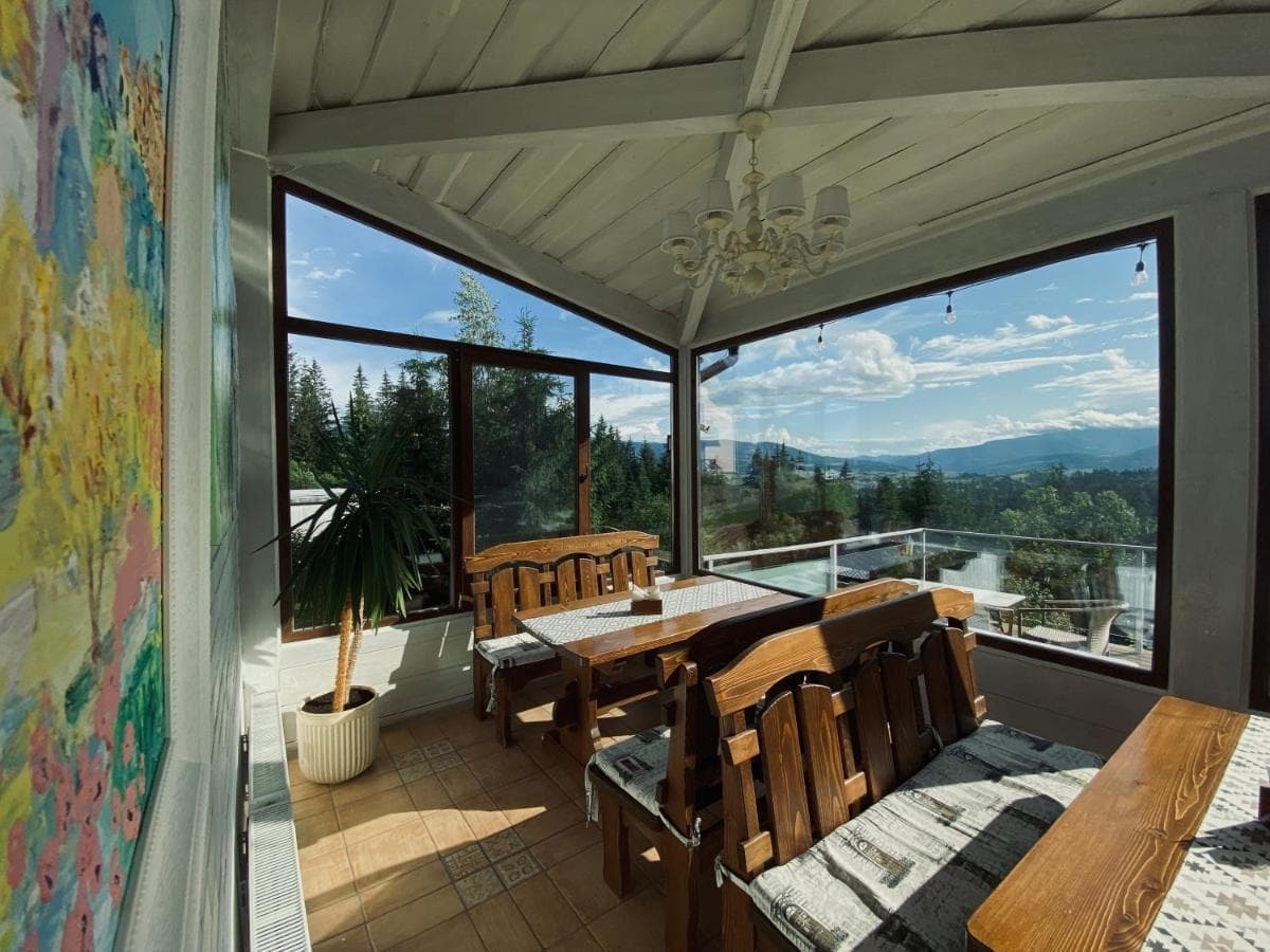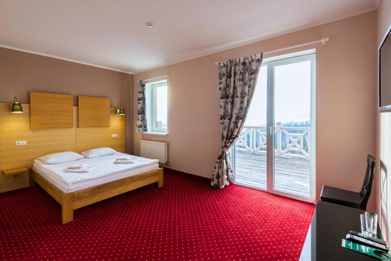 З панорамної тераси, що одночасно є місцем відпочинку та рестораном, відкривається прекрасний вид на три найвеличніші вершини Карпат – Говерлу, Петрос і Драгобрат.