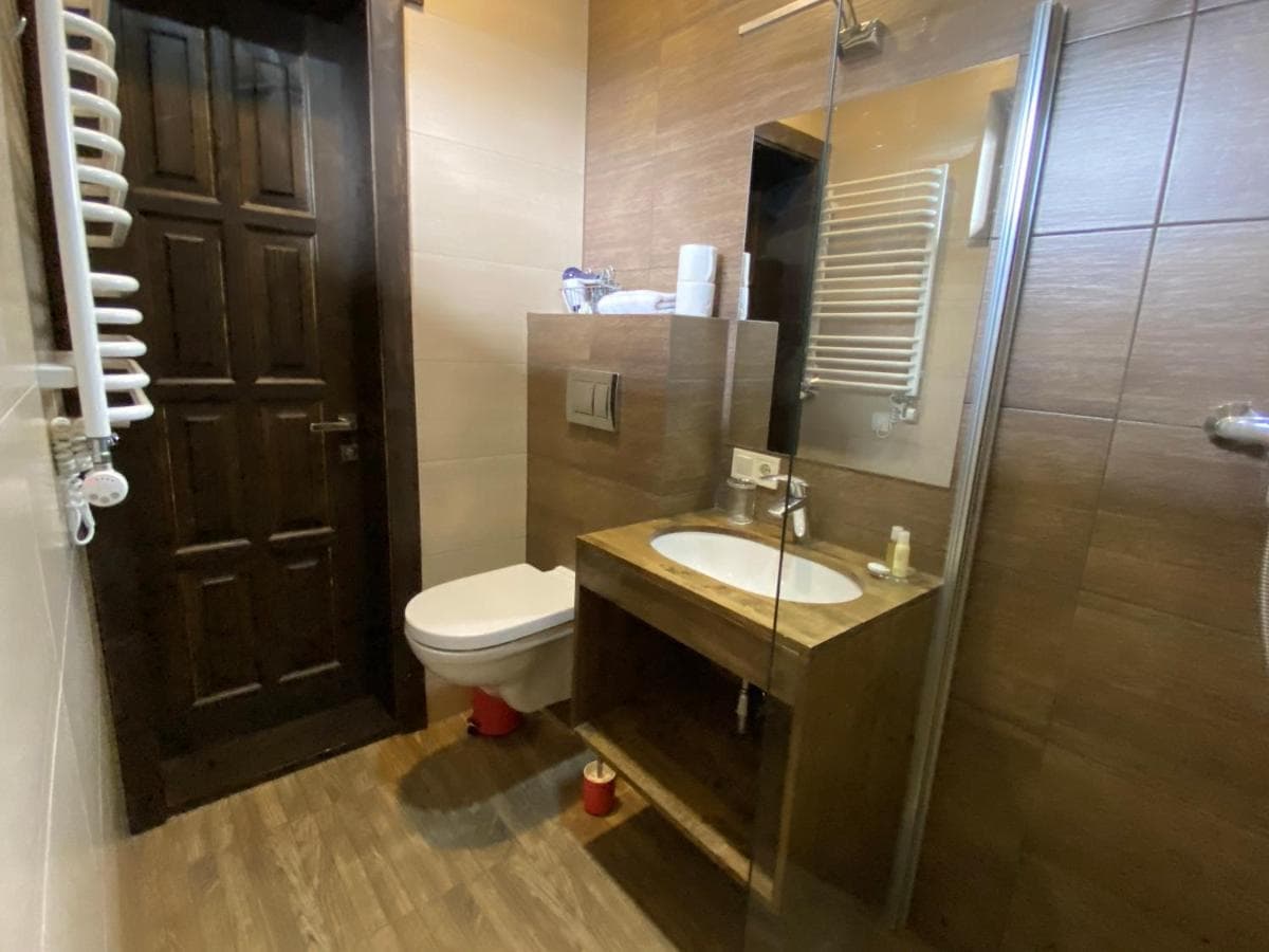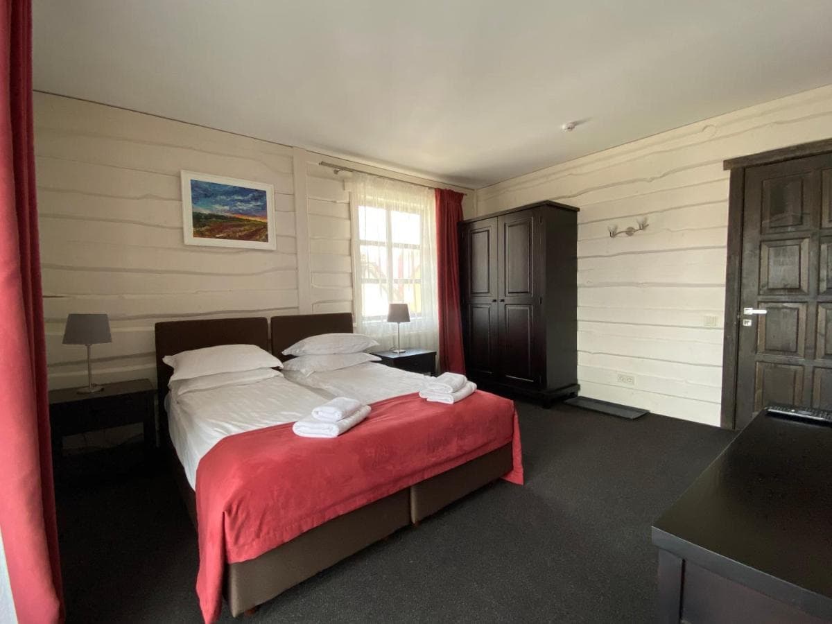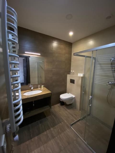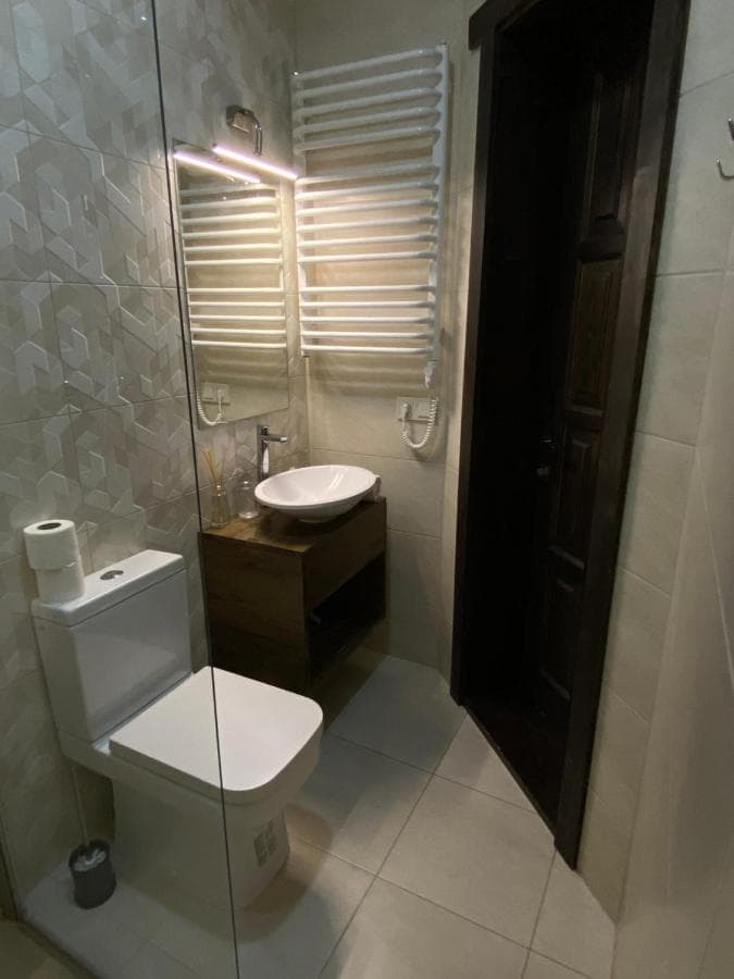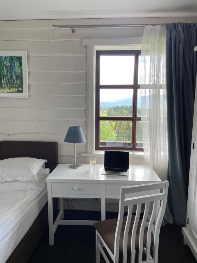 На другому поверсі — двокімнатний номер (спальня — двоспальне ліжко, розкладне крісло, телевізор, вітальня — розкладний диван, шафа для одягу, санвузол — ванна, туалет, умивальник), півлюкс (двоспальне ліжко, 2 розкладні крісла, шафа для одягу, телевізор, камін, санвузол — душ, туалет, умивальник).