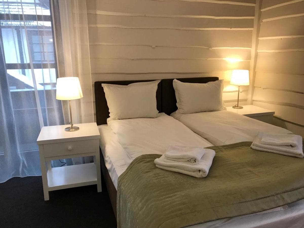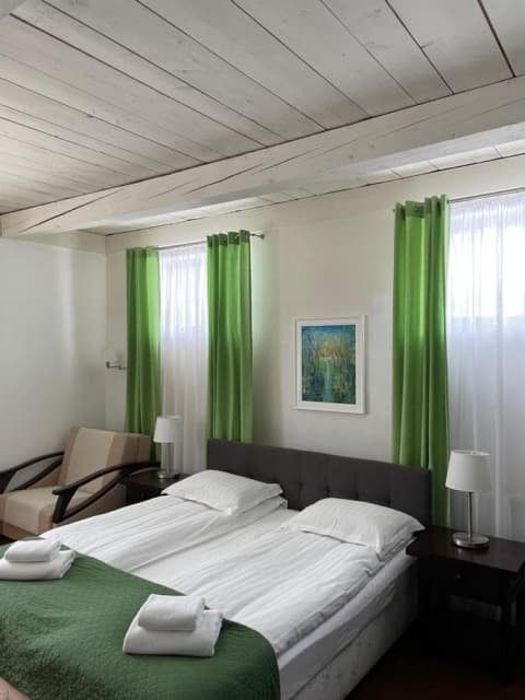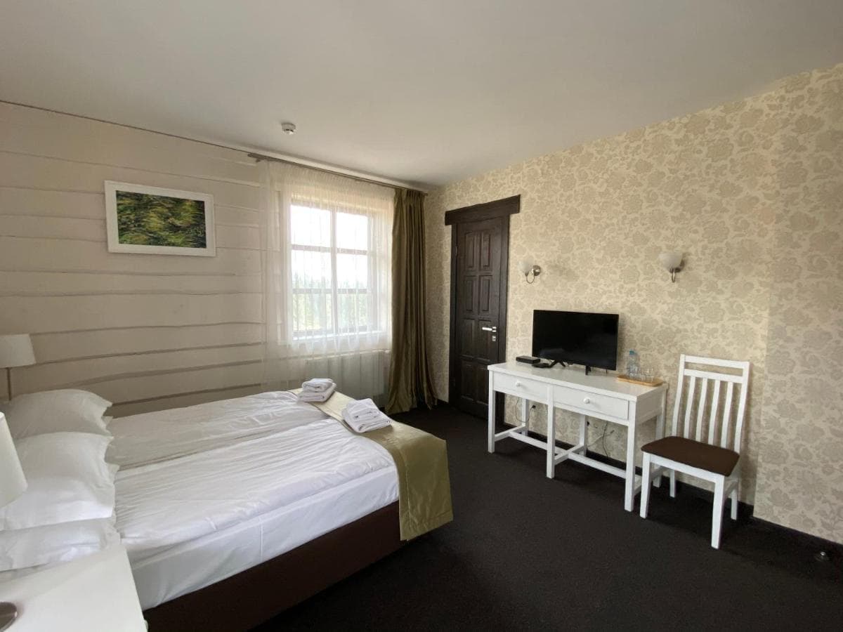 На першому поверсі — 2 двомісні стандартні номера (у кожному — двоспальне ліжко, шафа для одягу, телевізор, додаткове місце — розкладне крісло, санвузол — душ або ванна, туалет, умивальник).