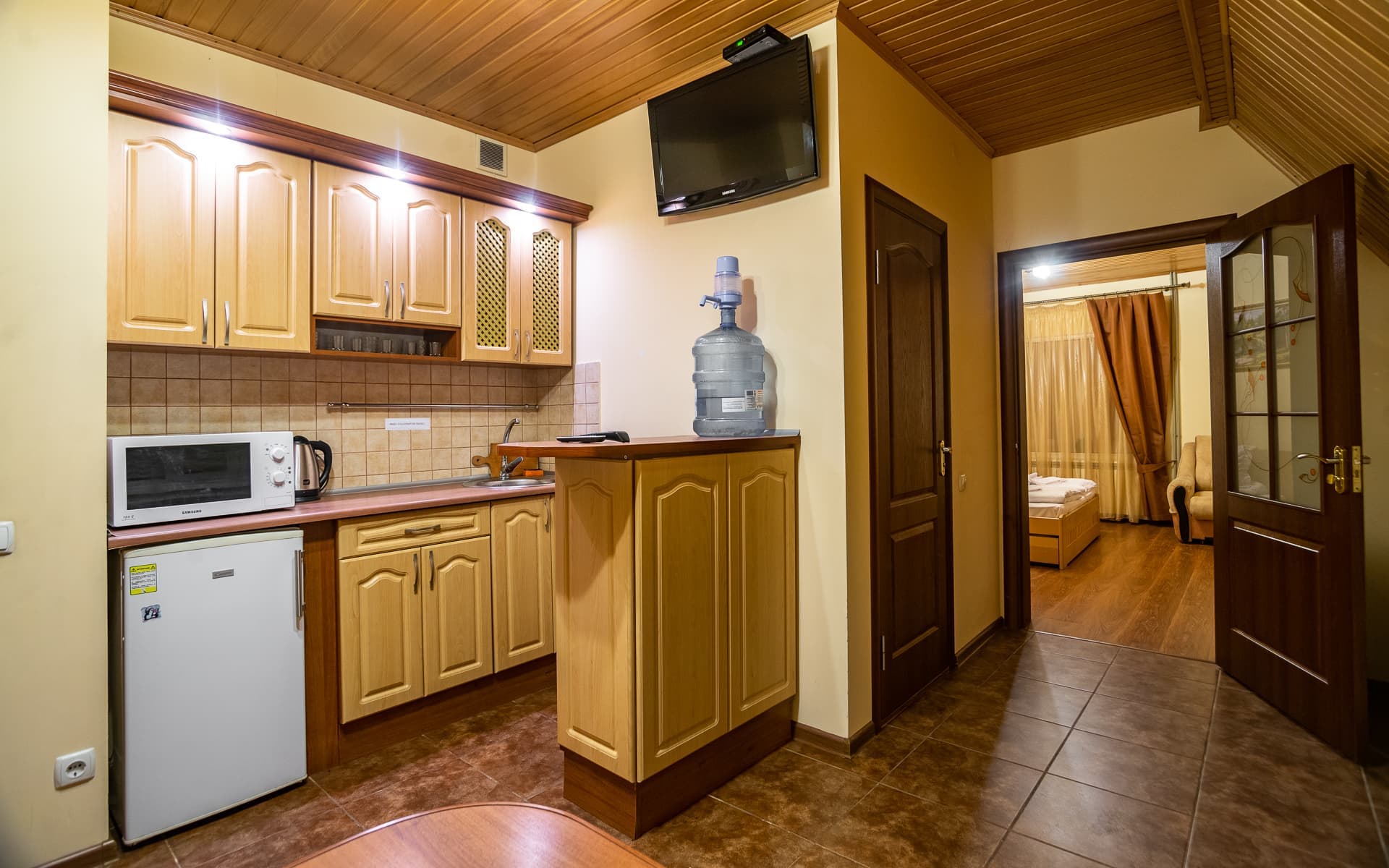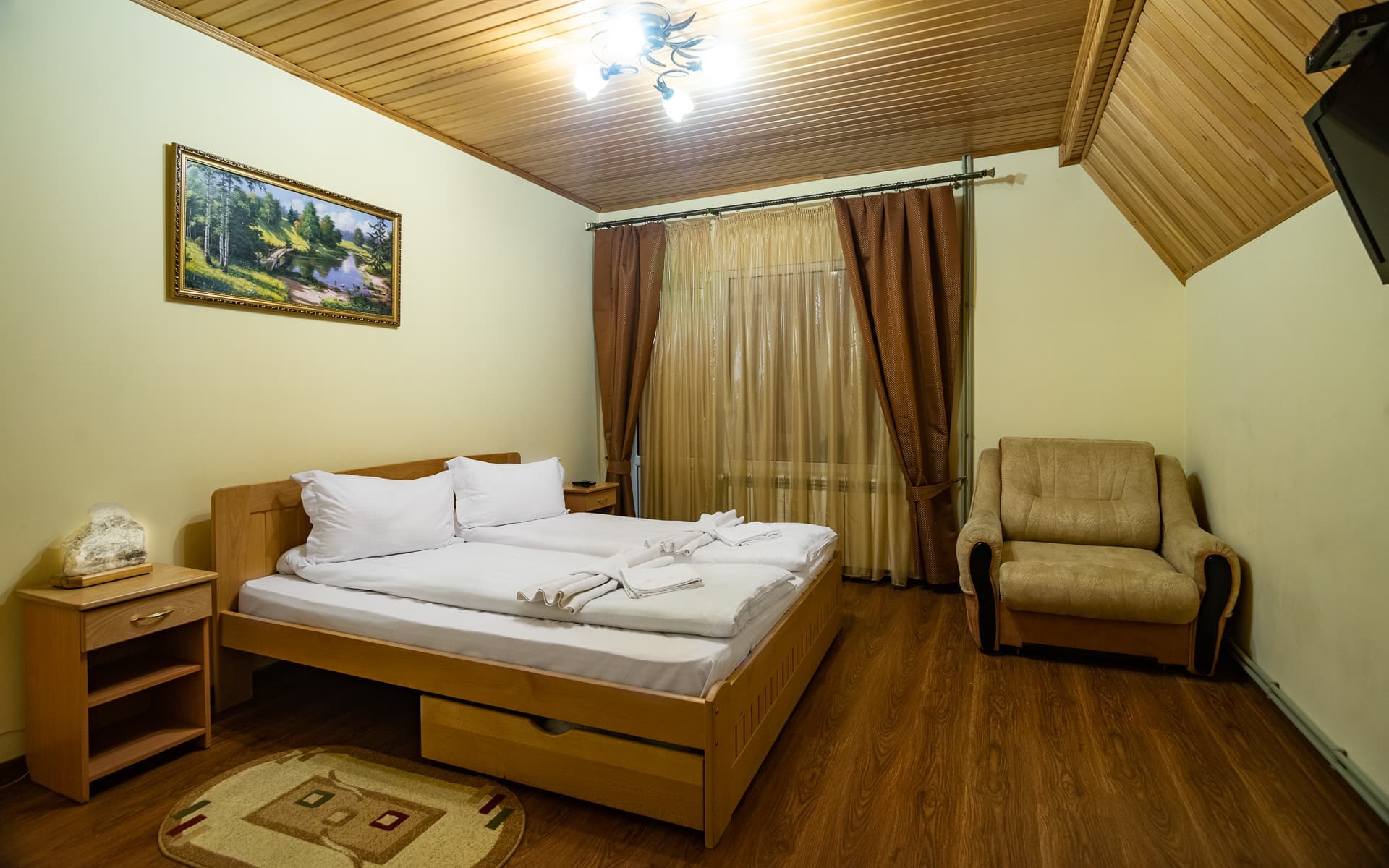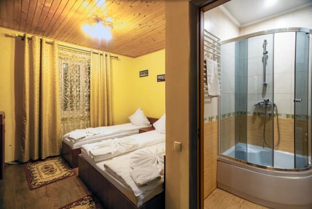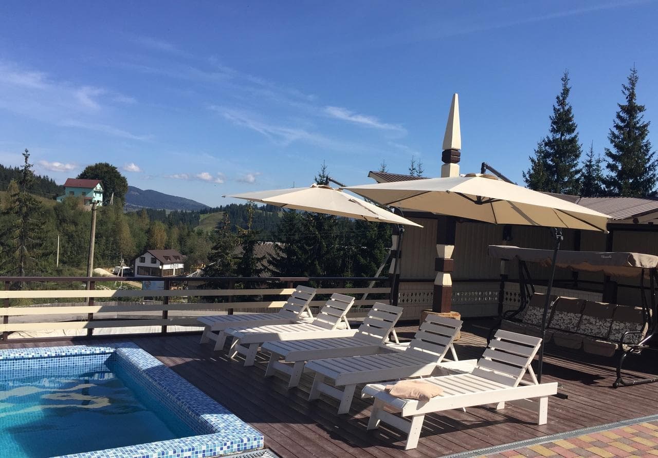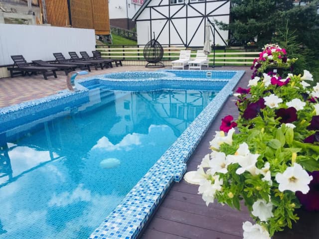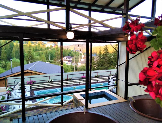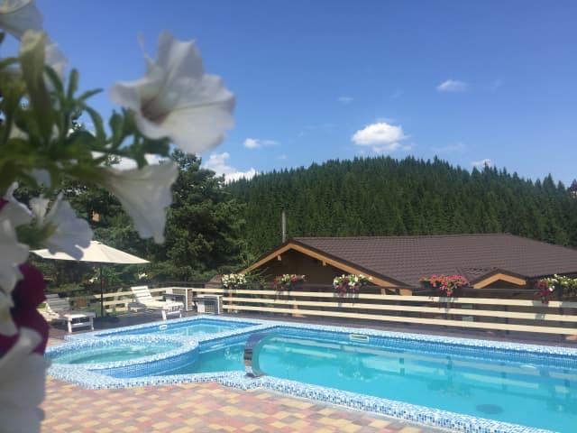 На Вас чекають ознайомчі екскурсії з Яблуницьким перевалом, поїздки на полонину, відвідання мальовничих водоспадів та озер – все це та багато іншого чекає на гостей нашого готелю біля Буковеля. Після насиченого дня в горах ви зможете розслабитися у справжній карпатській лазні з натурального дерева, влаштувати барбекю на мангалі у зоні відпочинку або розіграти партію на більярді. Для дітей облаштовано ігровий майданчик. Задля того, щоб ситно і смачно харчуватися, вам навіть не доведеться залишати віллу в Яблуниці – у нас є власний ресторан української і європейської кухні. До найближчої продуктової крамниці не більше 50 метрів.