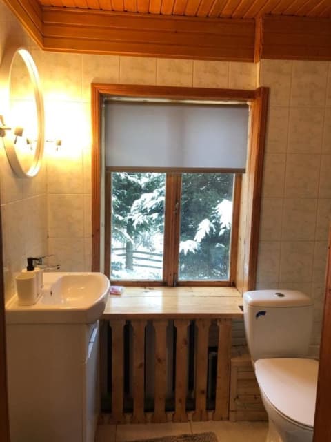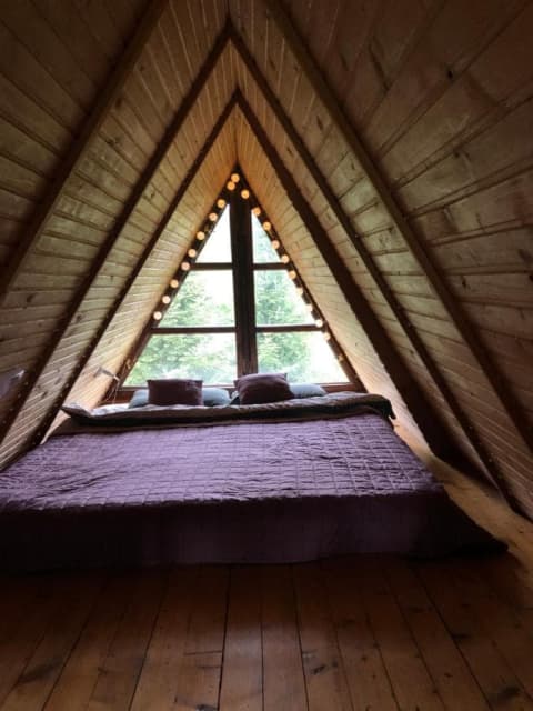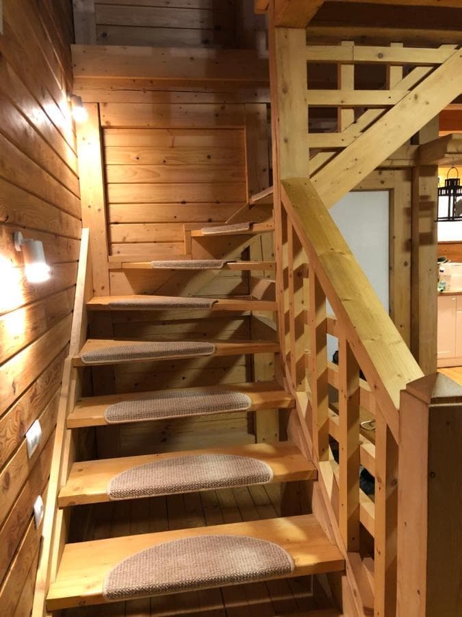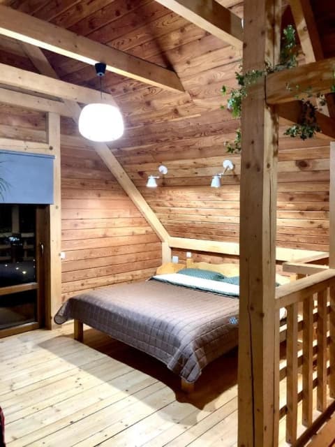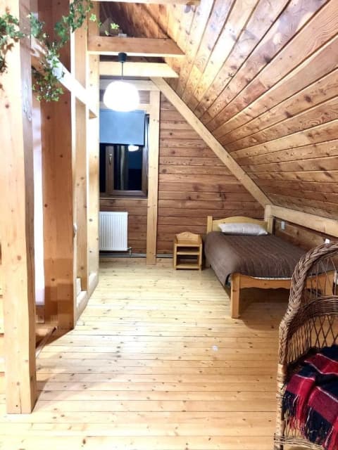 На другому поверсі - кімната для 4 осіб (1 двоспальне ліжко та 2 односпальні ліжка), санвузол (душ, туалет, умивальник)