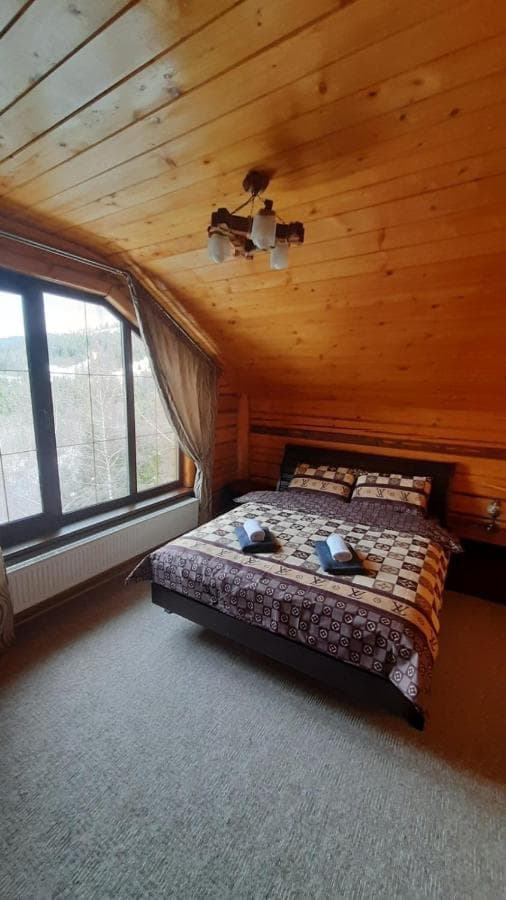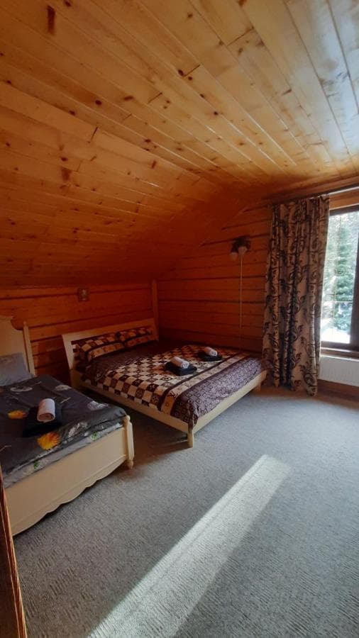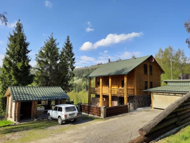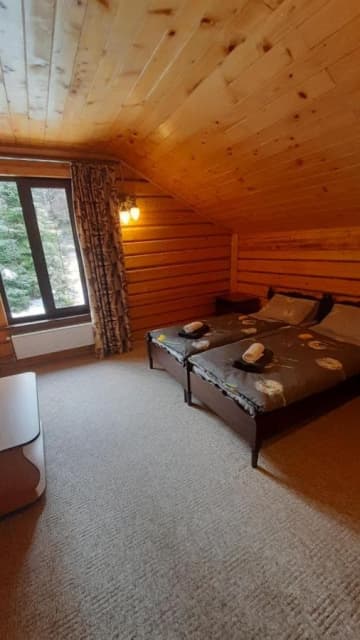 «Карпатський затишок» - це 3-поверховий котедж на 7-9 осіб. На території є альтанка, мангал, спортивний та дитячий майданчик, дитяча тарзанка.