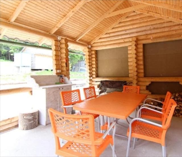 Гості можуть самостійно готувати їжу на кухні. Також можна замовити харчування з доставкою. Відстань до найближчого кафе становить 3 км, а до найближчого магазину - 2,5 км.