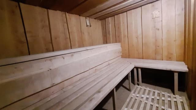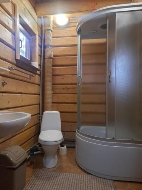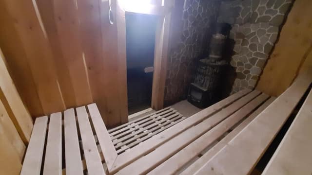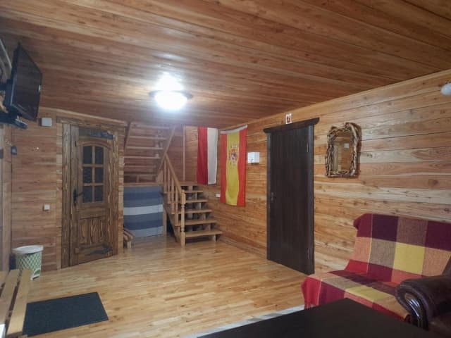 На першому поверсі знаходиться сауна, вітальня (м'який куточок, телевізор), санвузол (душова кабіна, туалет, умивальник, засоби гігієни).