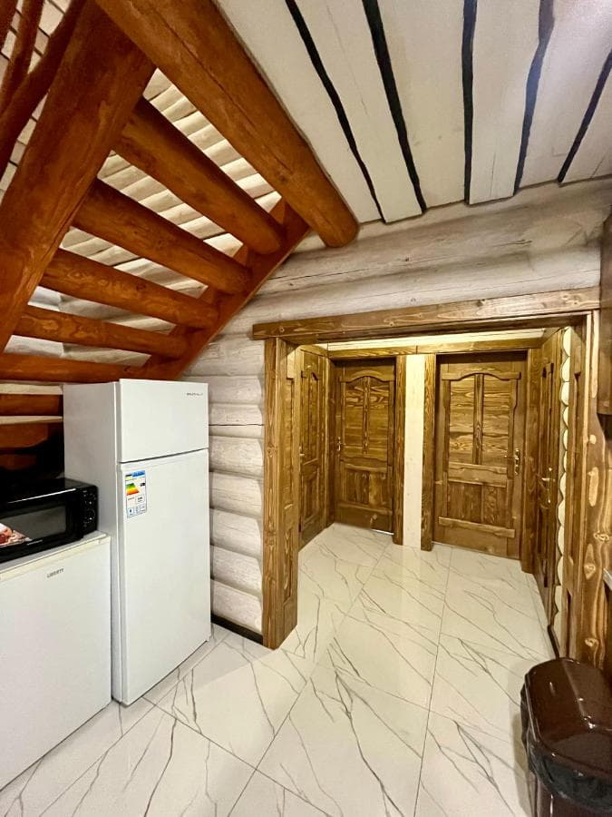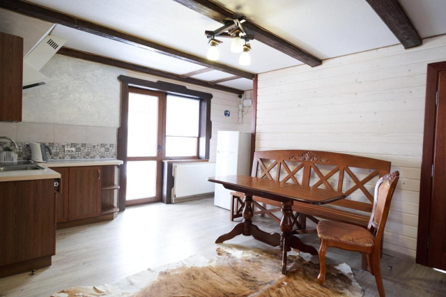 Кухня: електроплита, мікрохвильова піч, холодильник, електрочайник, мийка, посуд. Вітальня з каміном: телевізор, обідній стіл зі стільцями. 2 двомісні номери: Один — з двоспальним ліжком, шафою, телевізором. Другий — з двома розкладними диванами, телевізором. Санвузол: ванна, туалет, умивальник, пральна машина.