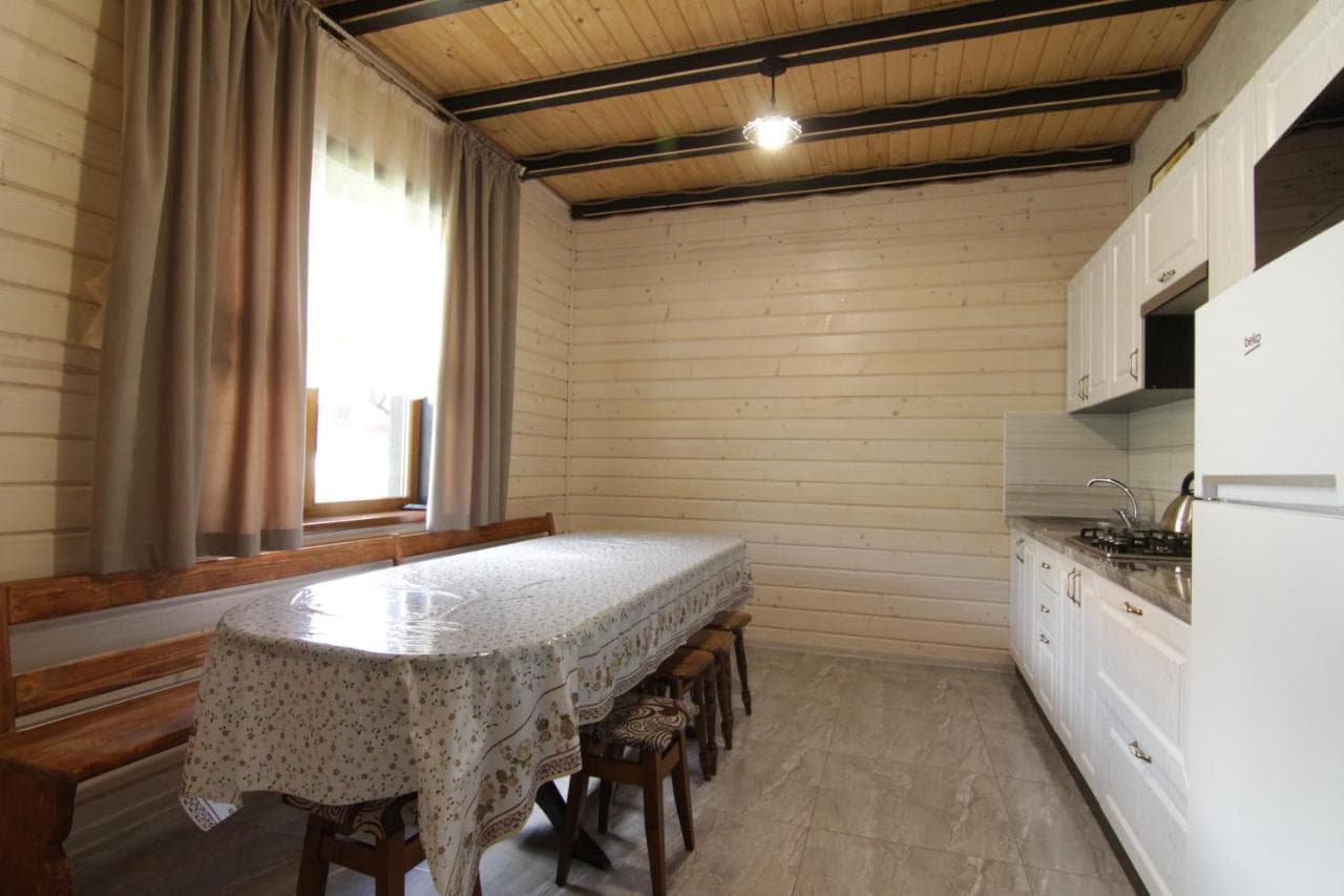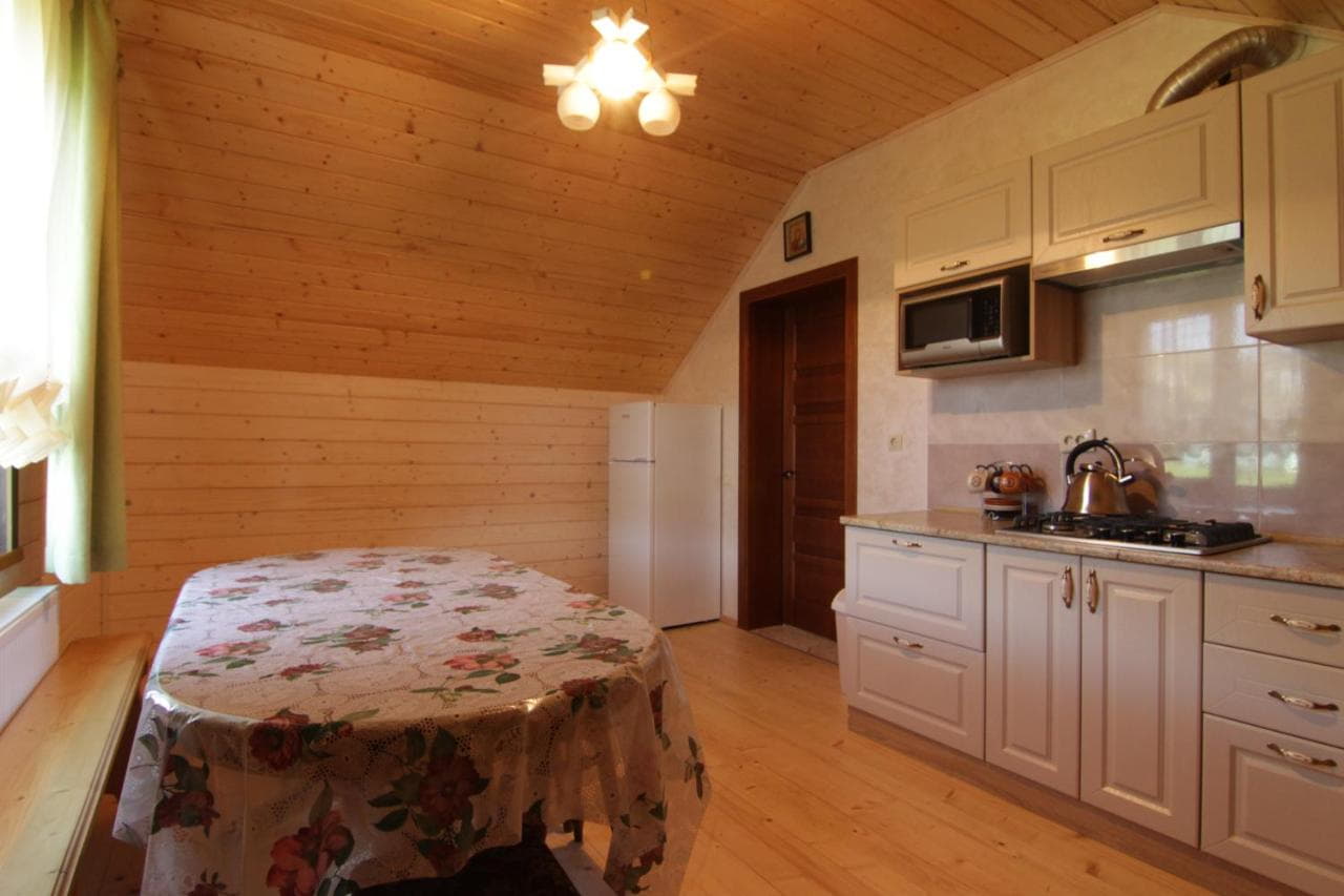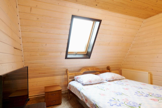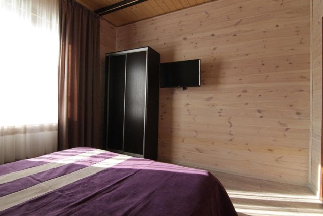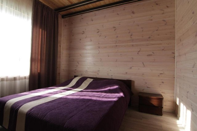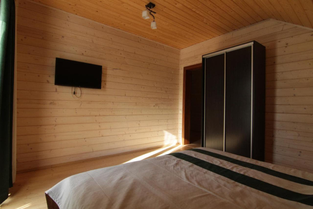 Тераса з лавами та столами для відпочинку на свіжому повітрі. Кухня: газова плита, мікрохвильова піч, холодильник, чайник, мийка, посуд, обідній стіл, телевізор. 3 двомісні номери з двоспальними ліжками, вішалками для одягу. В одному номері є додаткове місце — розкладне крісло. 2 санвузли: душові кабіни, туалети, умивальники.