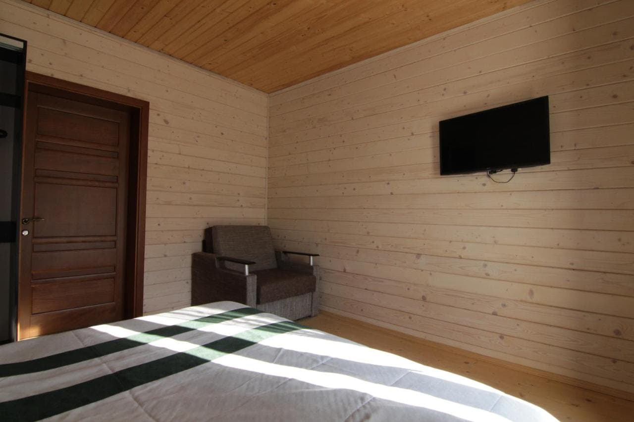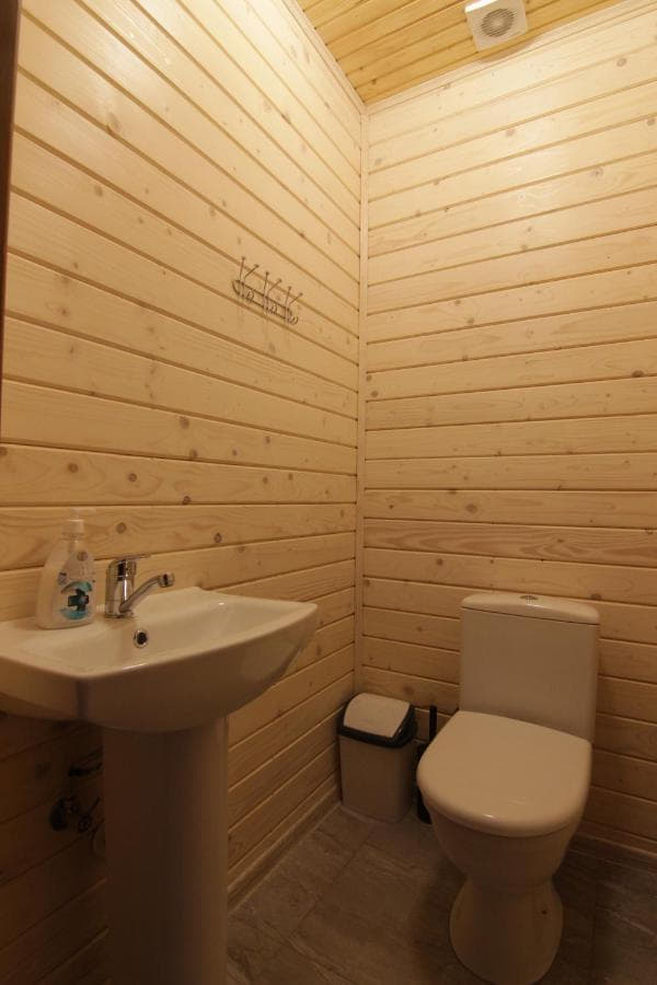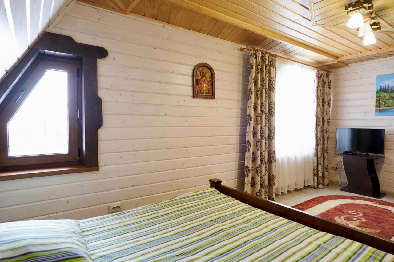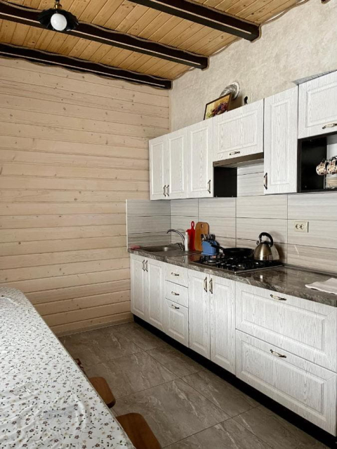 Тераса з лавами та столами для відпочинку на свіжому повітрі. Кухня: газова плита, мікрохвильова піч, холодильник, чайник, мийка, посуд, обідній стіл, телевізор. 3 двомісні номери з двоспальними ліжками, вішалками для одягу. В одному номері є додаткове місце — розкладне крісло. 2 санвузли: душові кабіни, туалети, умивальники.