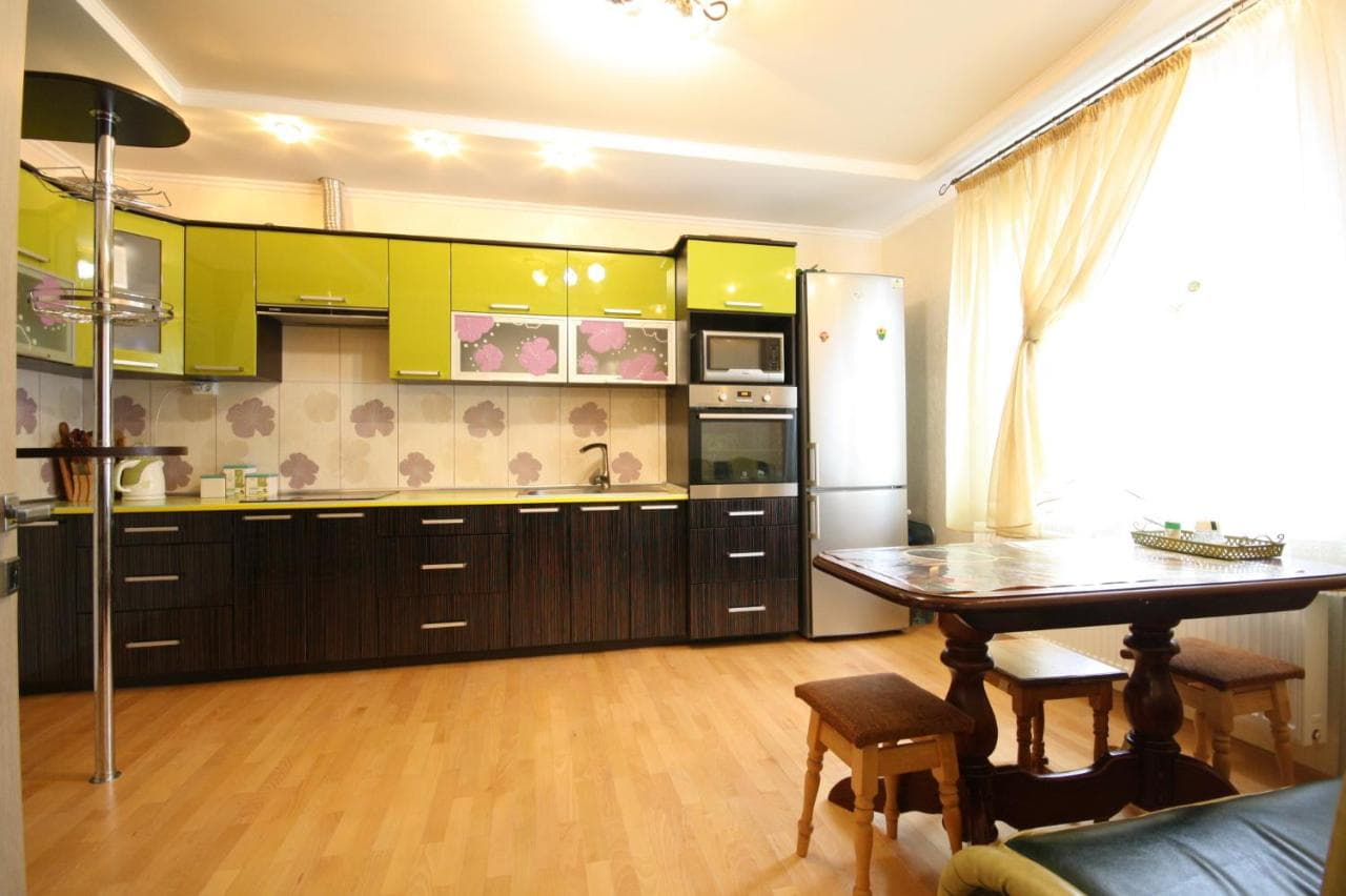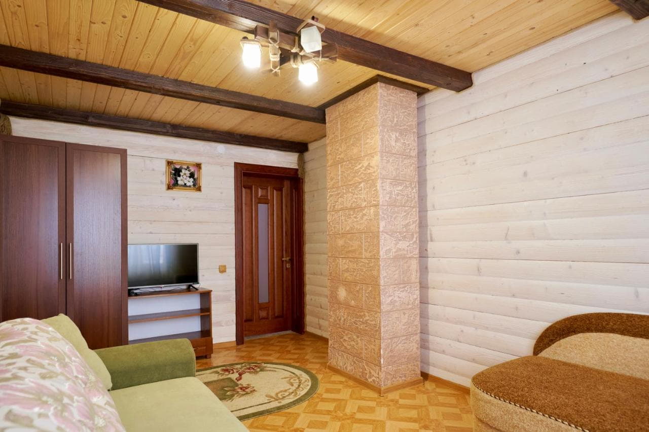 Хол з кухонним куточком: електроплита, мікрохвильова піч, холодильник, електрочайник, посуд, стіл, телевізор, балкон. 4 двомісні номери з різними варіантами спальних місць: двоспальне або два односпальні ліжка, розкладні дивани. У двох кімнатах є додаткове розкладне ліжко. Санвузол: душова кабіна, туалет, біде, умивальник.