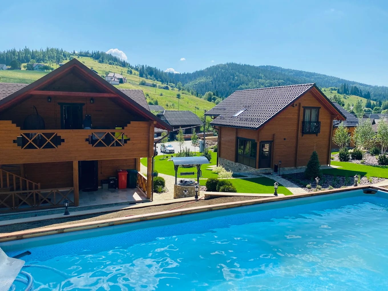 Наші котеджі в Карпатах пропонують набагато більше, ніж просто комфортне проживання. Гості можуть повністю розслабитися у сауні після насиченого дня, насолодитися традиційним карпатським відпочинком у чані або освіжитися у басейні. Для любителів приготування страв на свіжому повітрі ми підготували сучасну мангальну зону, а високошвидкісний WiFi дозволяє залишатися на зв’язку з зовнішнім світом навіть далеко від міста.