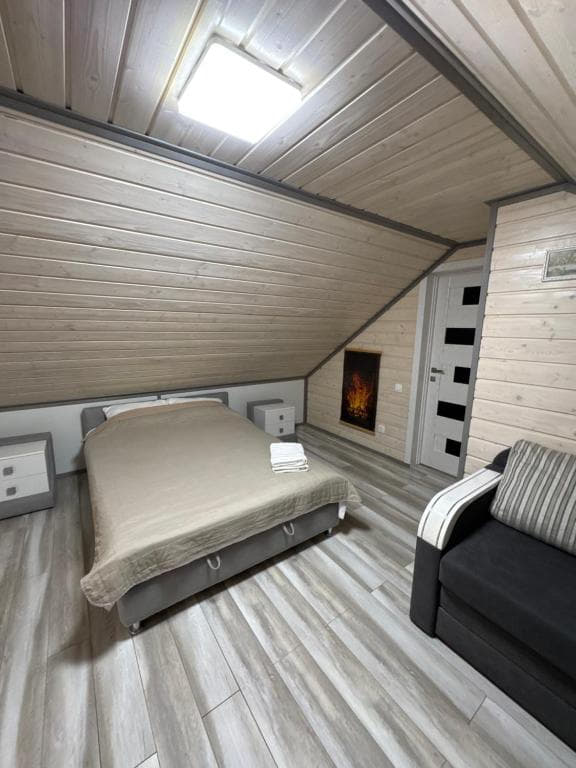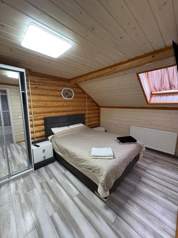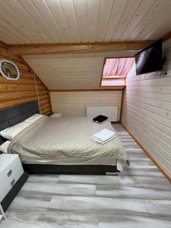 Затишний двомісний номер площею 8–12 м² створений для комфортного відпочинку. У ньому є просторе двоспальне ліжко з ортопедичним матрацом та приліжковими тумбами, шафа для одягу з дзеркалом, поличками та вішалками, а також телевізор із доступом до Wi-Fi та кабельного телебачення.