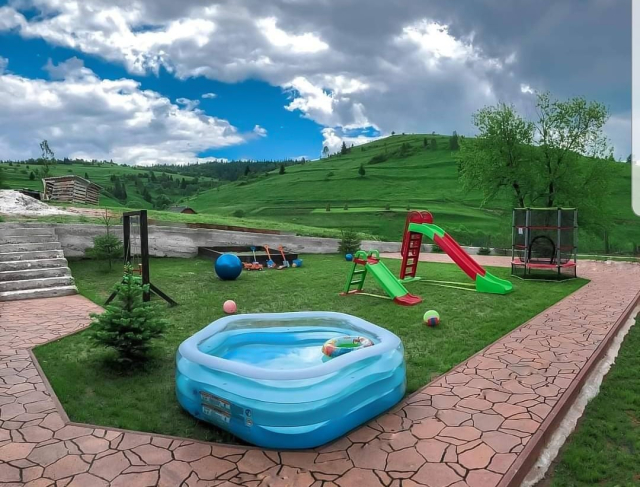 Для наймолодших гостей на території облаштовано дитячий майданчик і невеликий басейн, що розташовані поруч із терасою та мангалом. Це дозволяє батькам відпочивати і водночас зручно наглядати за дітьми.