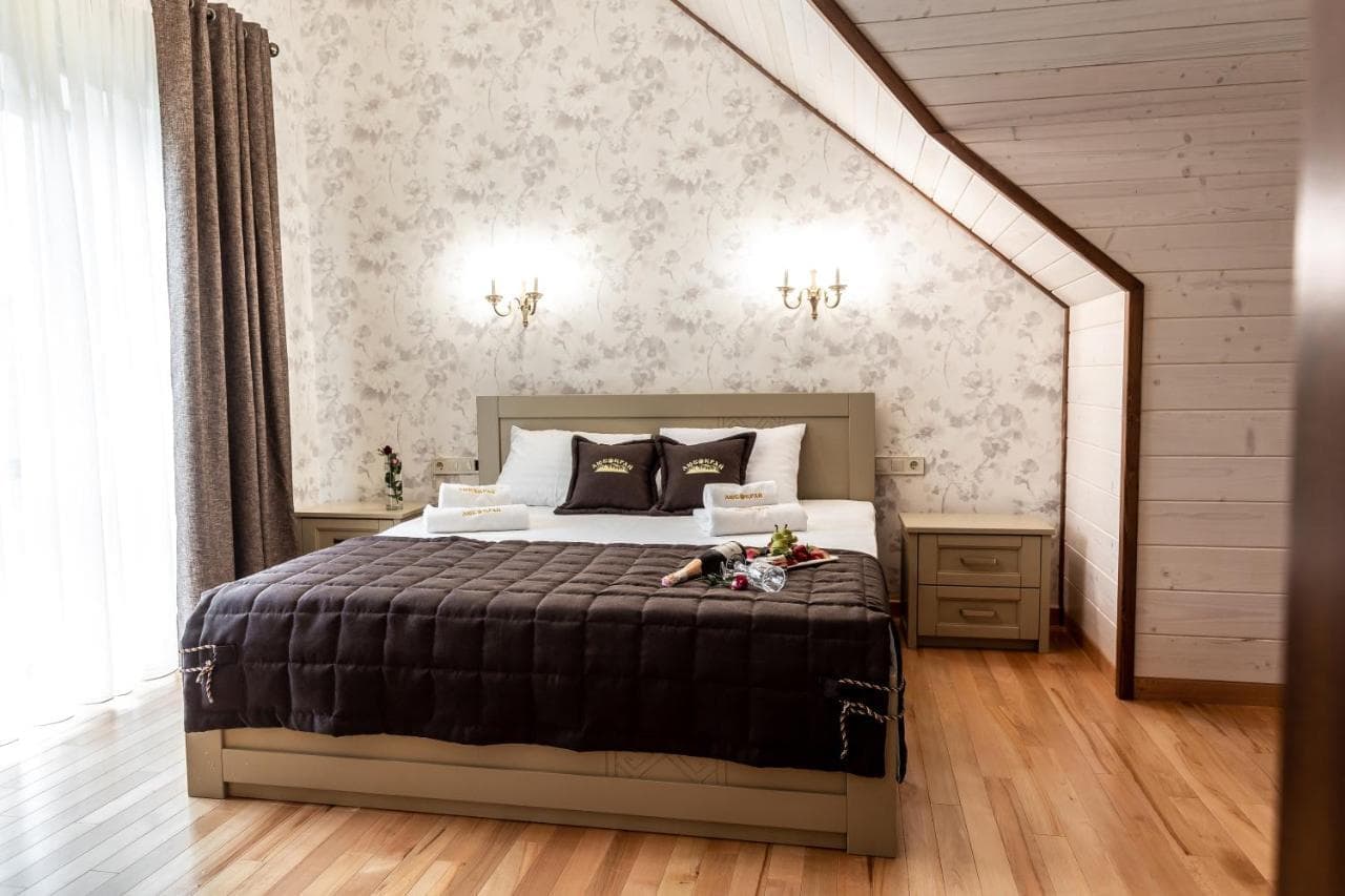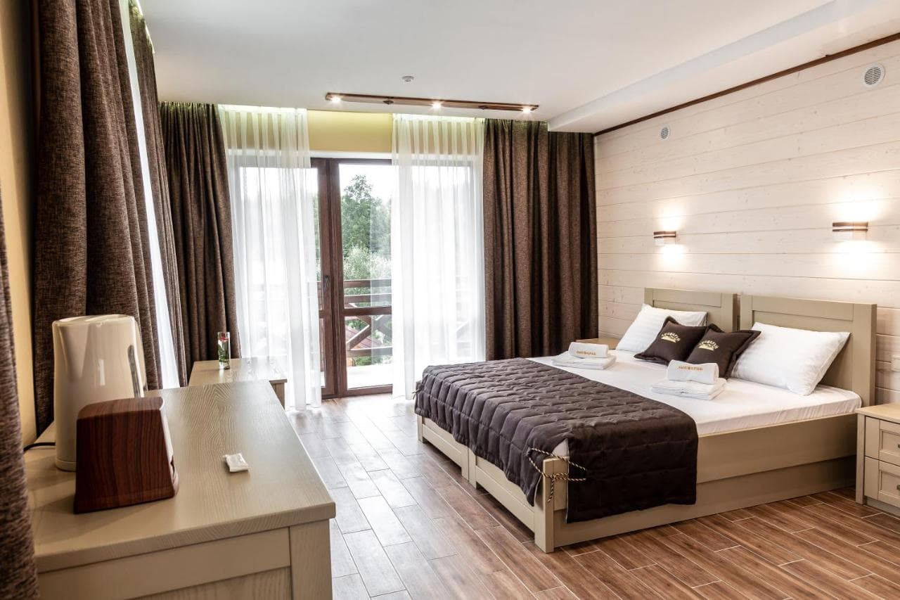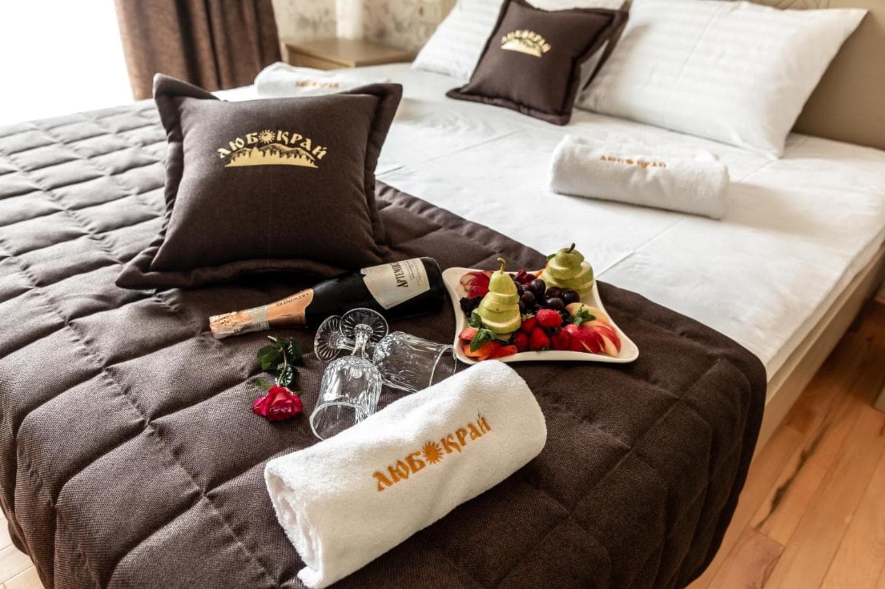 Номерний фонд комплексу «Любокрай» – це вдале поєднання класики та сучасних технологій. В обробці інтер’єру використані природні матеріали у теплій колірній гамі. З кожного номера готелю відкривається панорамний вид на гори.