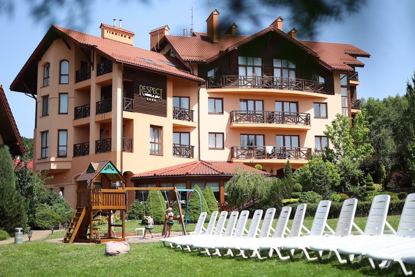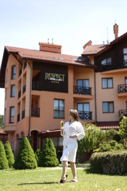 Готель «Respect» пропонує індивідуальний підхід до кожного гостя для максимального комфорту. Ексклюзивний ресторан, лобі, фітобар, унікальний бювет мінеральних вод, розкішний SPA-центр з басейном і сауною, конференц-центр, дитяча кімната та інше.