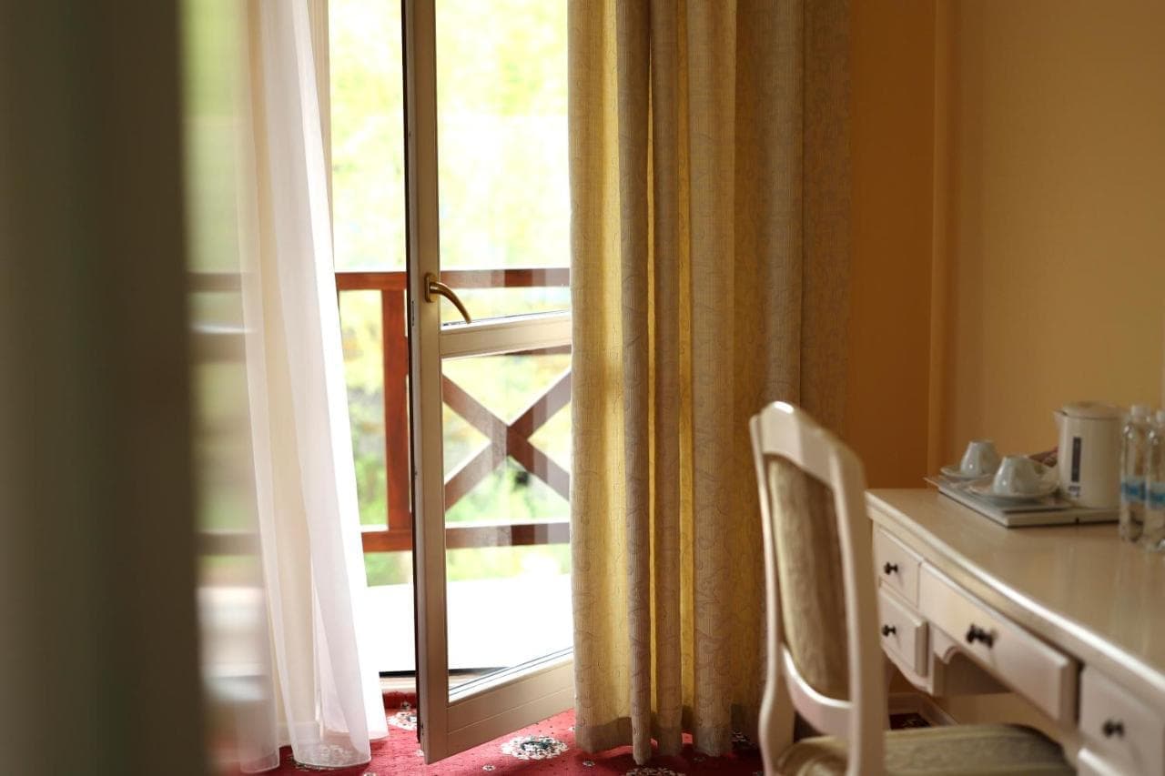 В панорамному люксі головною перевагою є балкон, де відкривається панорамний огляд місцевості. В номері є простора спальня з двоспальним ліжком, вітальня з м'якою частиною, коридор, 2 санвузли, а також: міні-бар, сейф, кондиціонер, 2 телефони, фен, холодильник, косметичний і чайний набори.