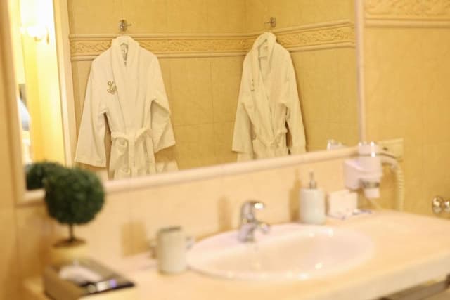 В апартаментах є дві окремі спальні кімнати, вітальня з каміном, їдальня з кухнею. В самому номері: міні-бар, сейф, кондиціонер, 2 телефони, фен, холодильник, косметичний і чайний набори.