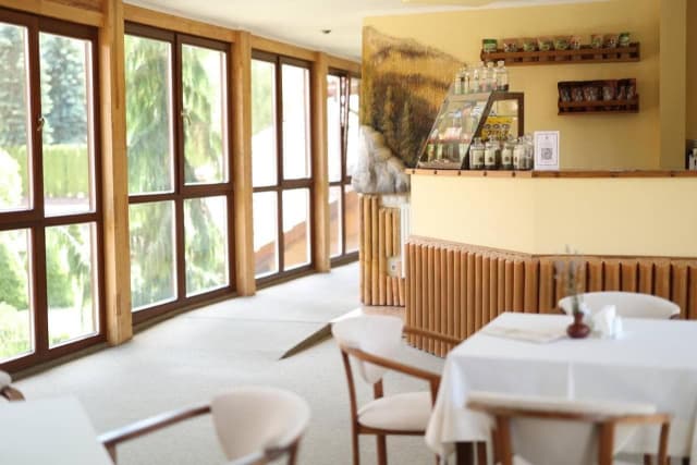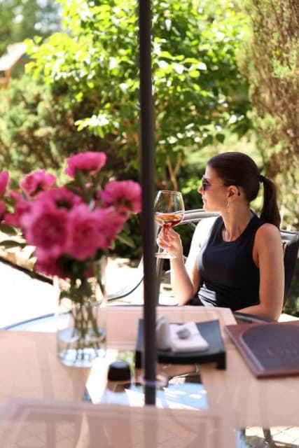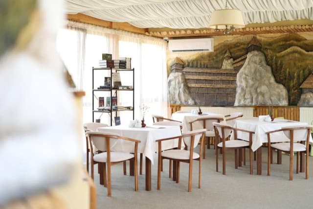 У ресторані подають страви традиційної української кухні та широкий вибір вин. Також пропонується багате меню сніданків. Насолодитися їжею або напоєм можна на тихій терасі.