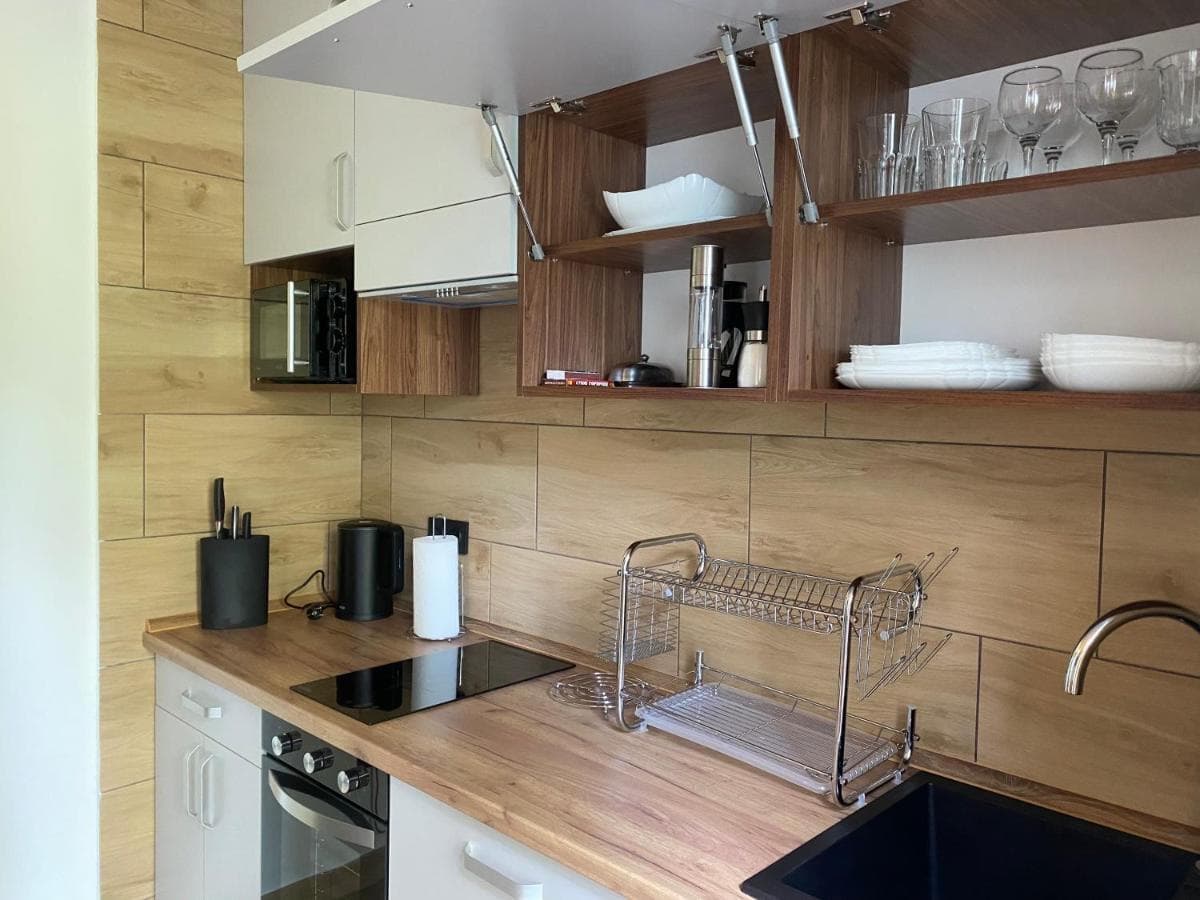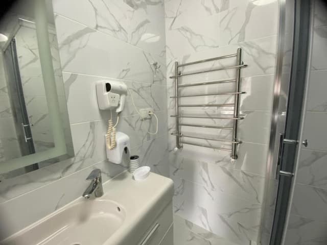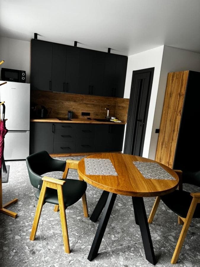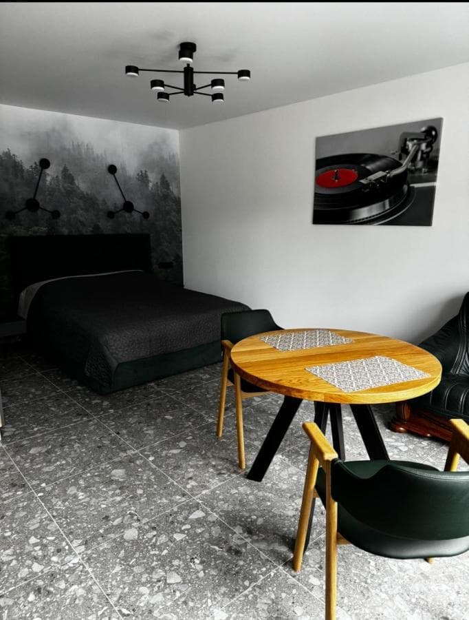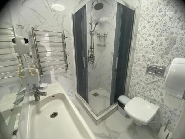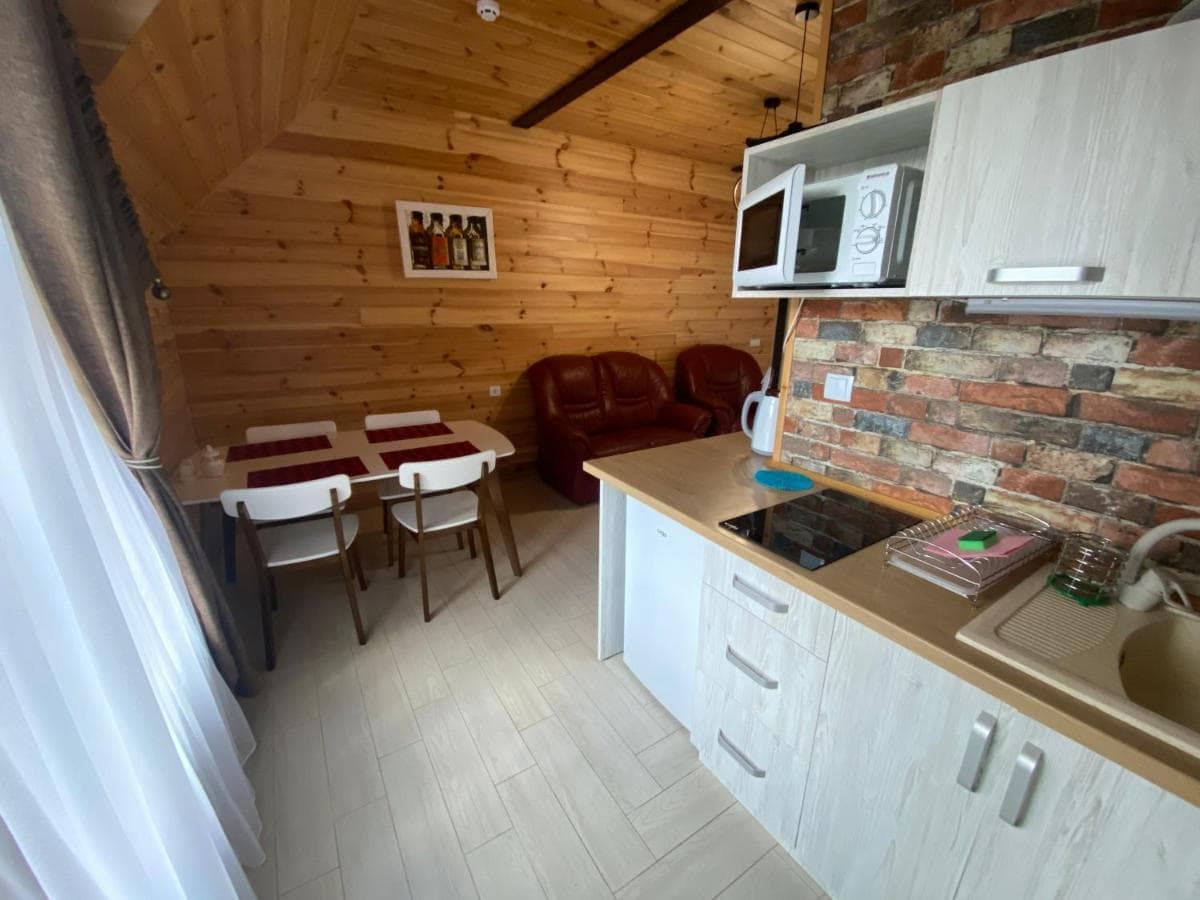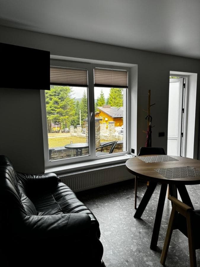 Покращені апартаменти (1 номер): двоспальне ліжко, розкладний диван, шафа для одягу, телевізор, міні-кухня (електроплита, холодильник, електрочайник, мікрохвильова піч, посуд, мийка, стіл), санвузол (душова кабіна, туалет, умивальник, фен).