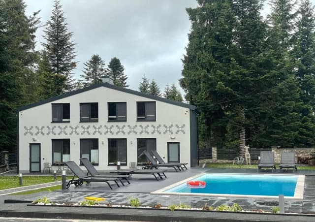 Двоповерхова будівля, побудована в 2019 році, має вісім апартаментів (24 місця) і три шале.