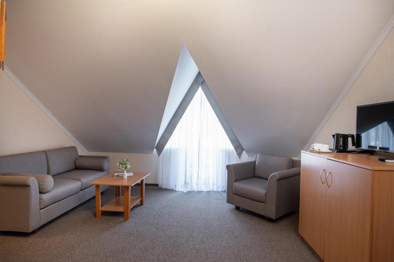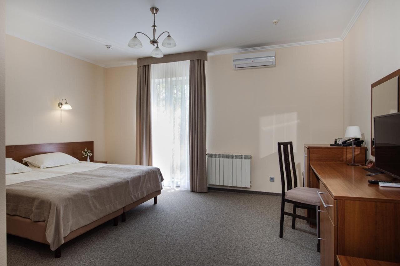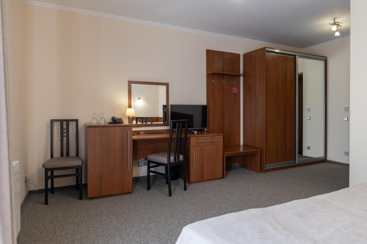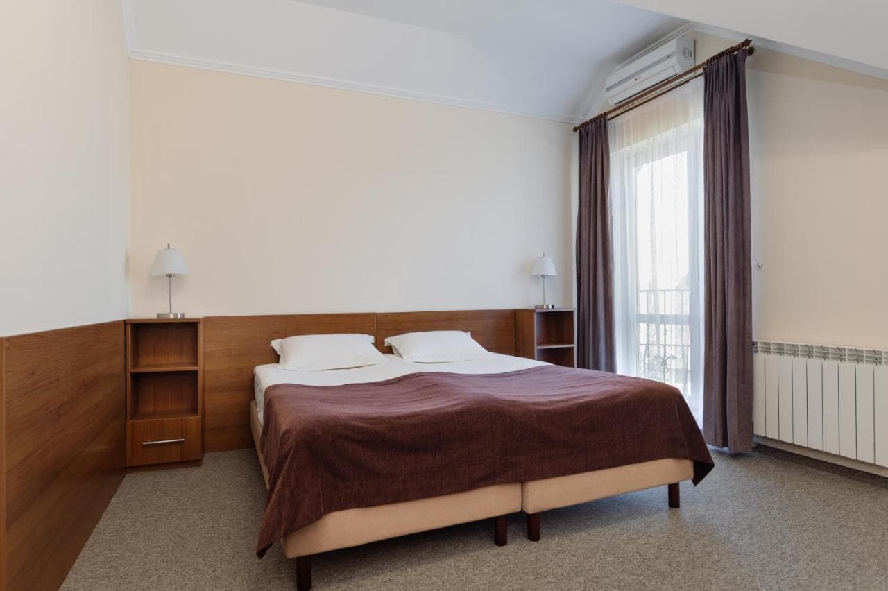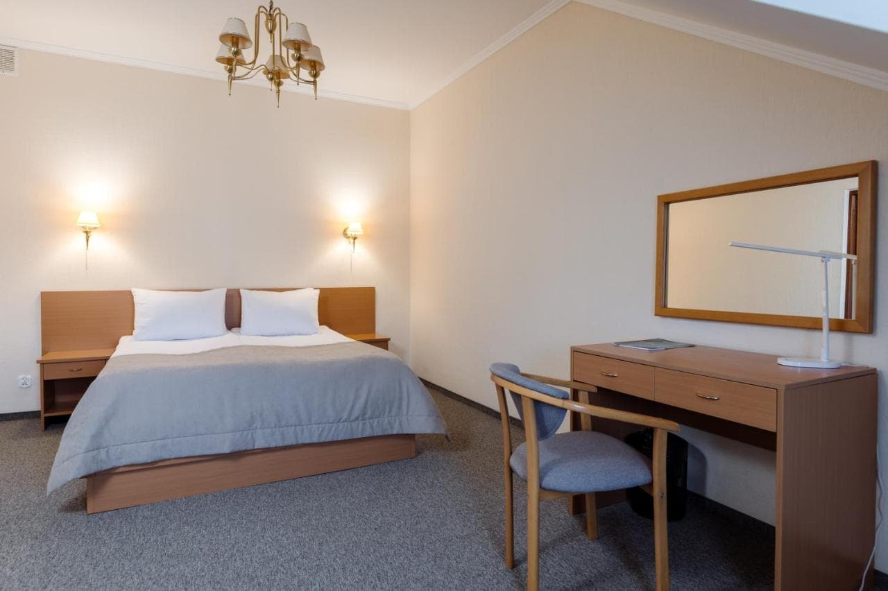 Готель пропонує стандартні номери, напівлюкси, люкси та люкс з каміном. Номери обладнані всім необхідним для комфортного проживання.