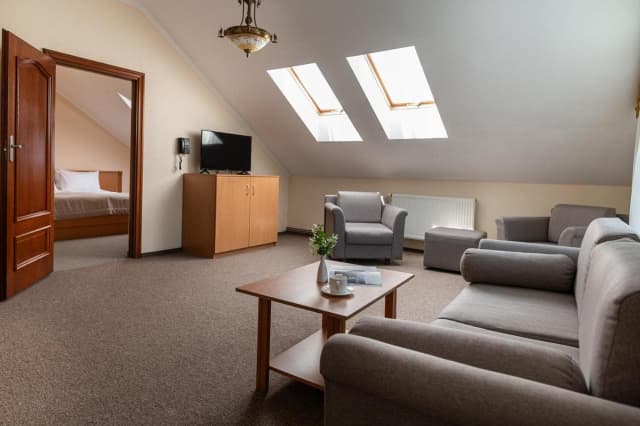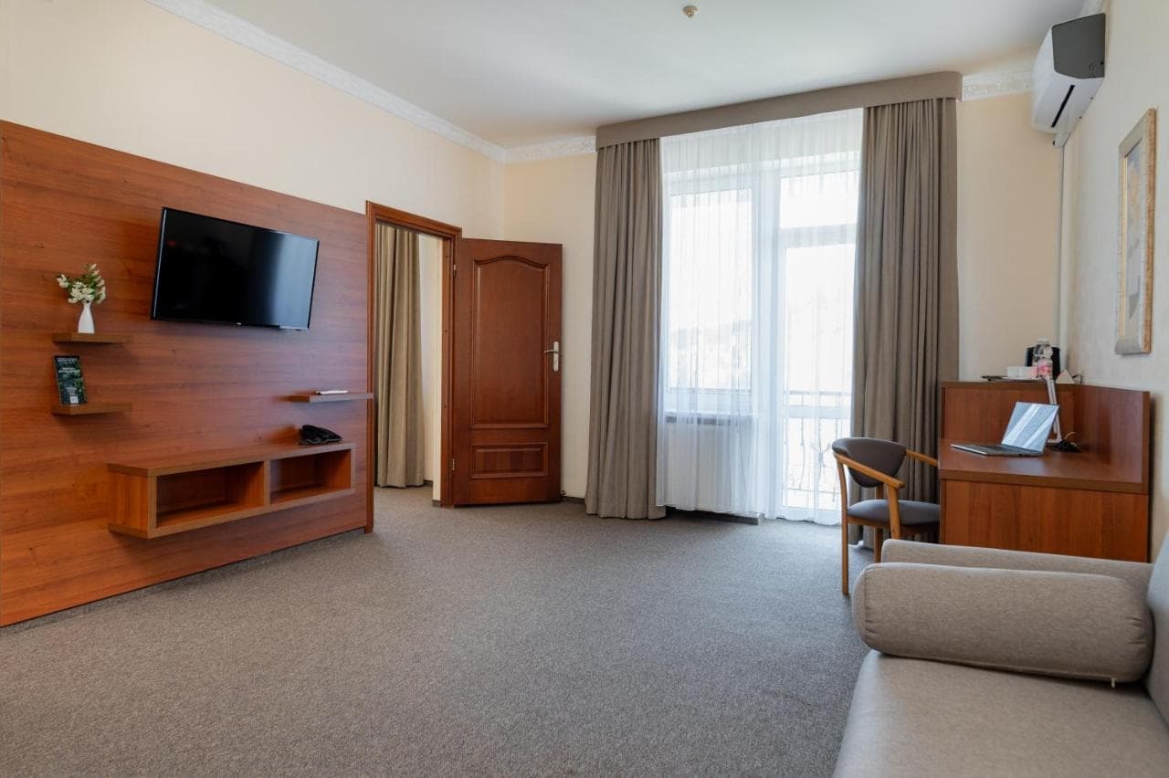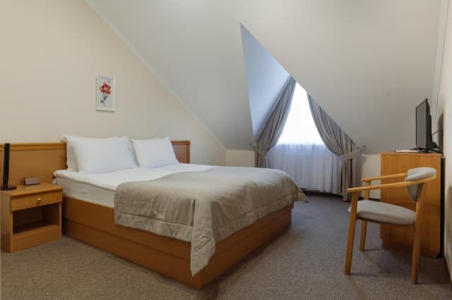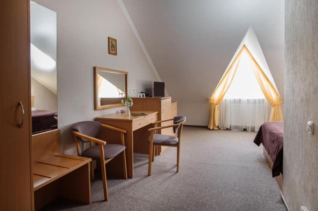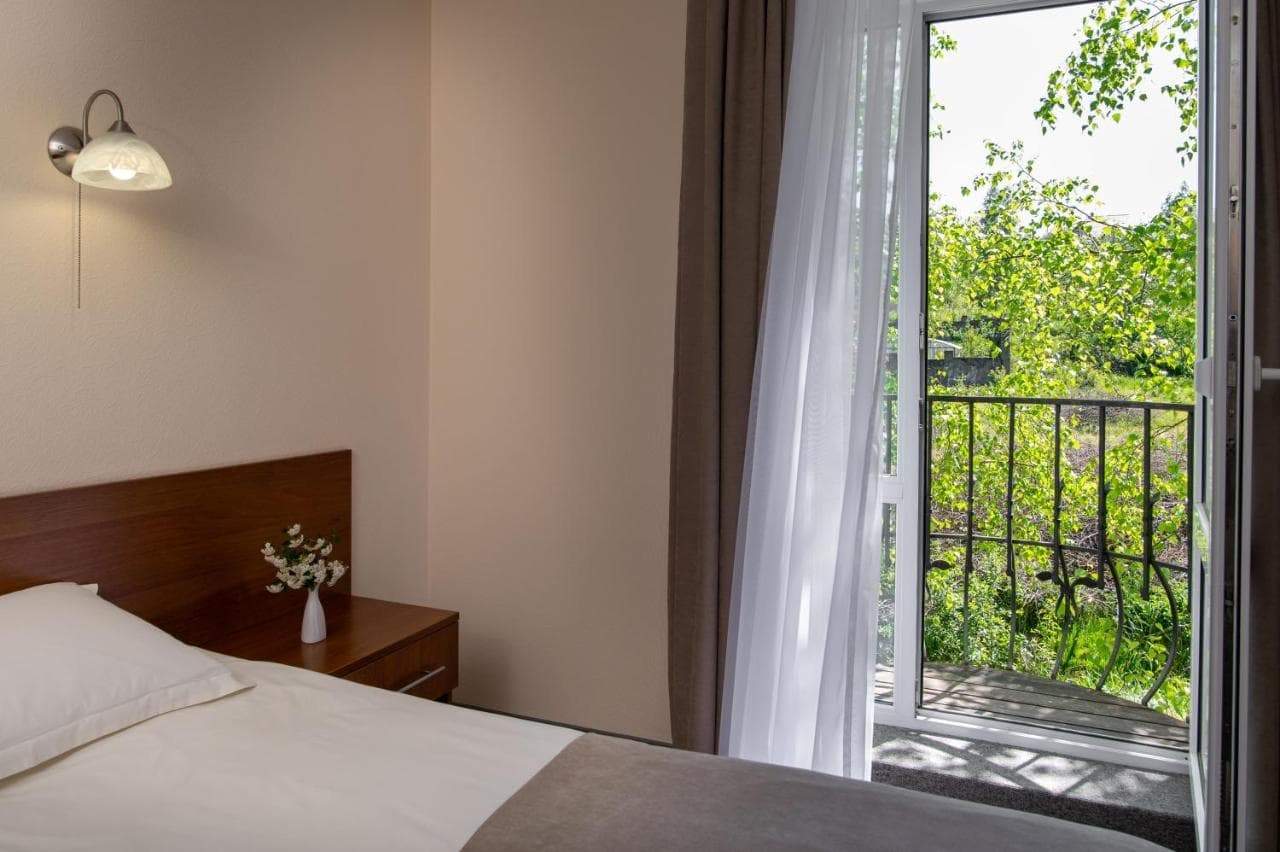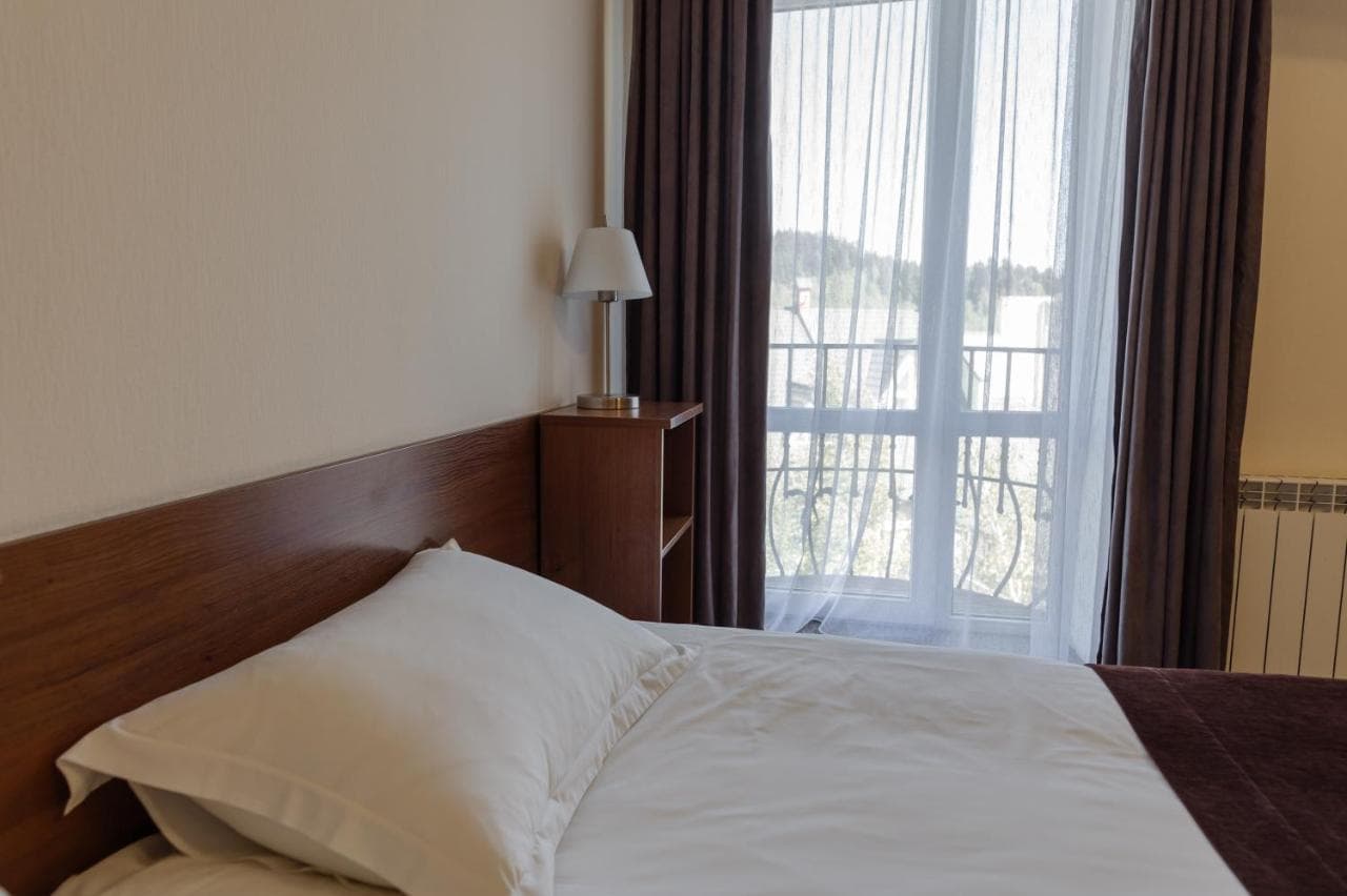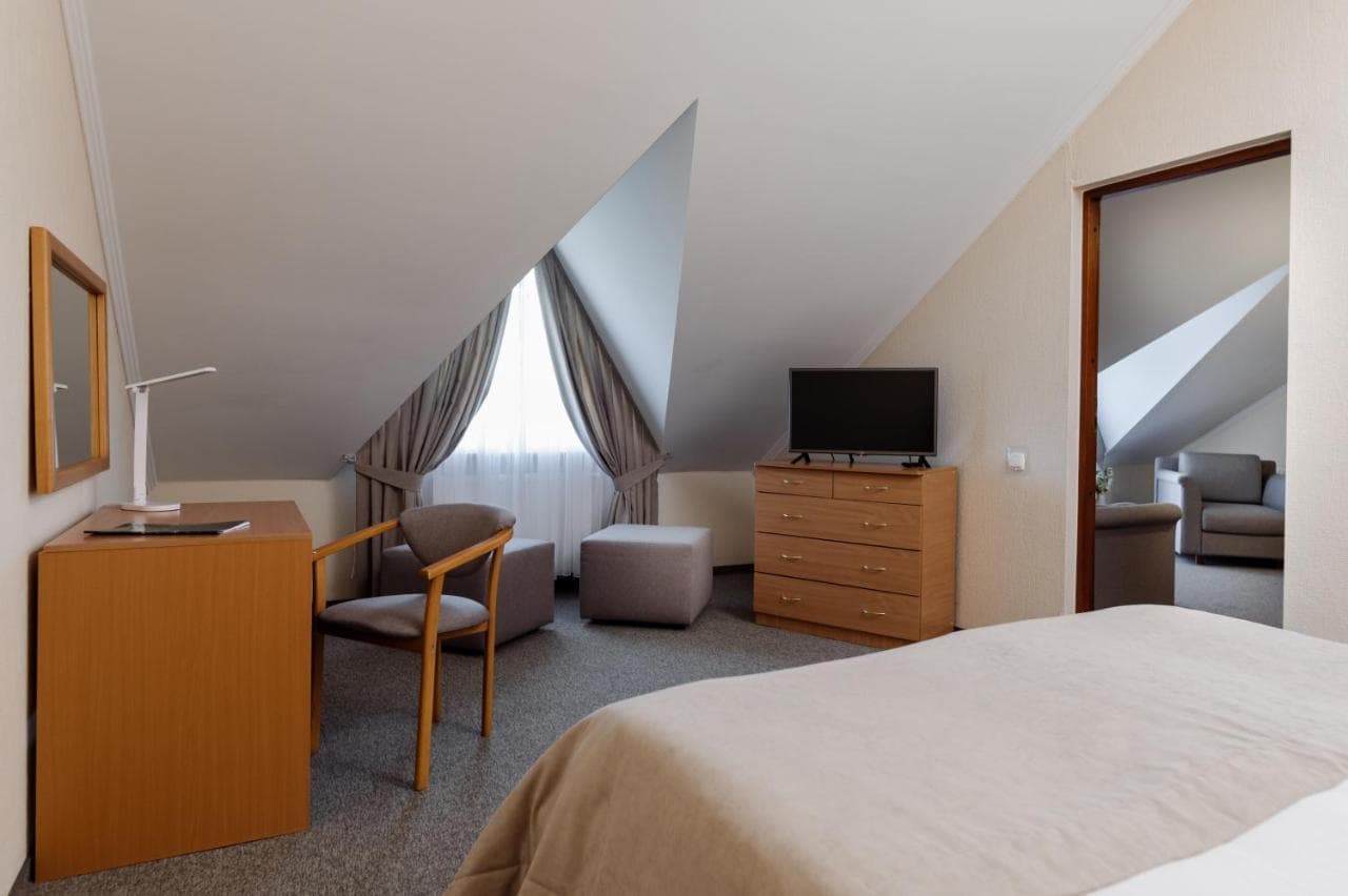 Готель пропонує стандартні номери, напівлюкси, люкси та люкс з каміном. Номери обладнані всім необхідним для комфортного проживання.