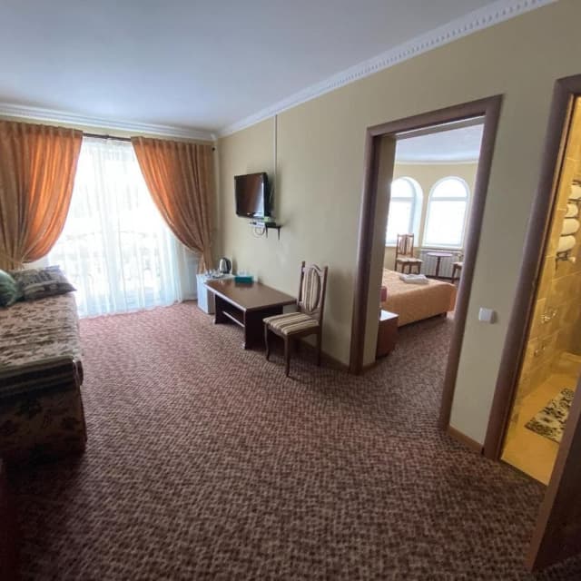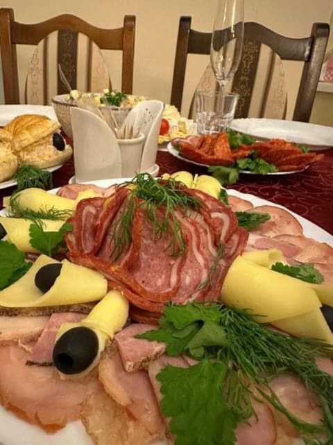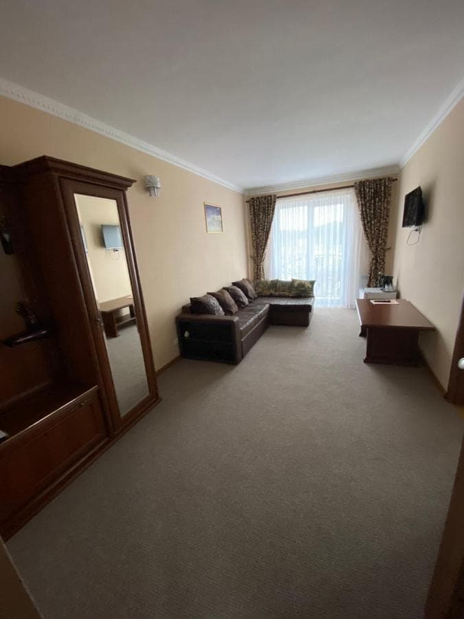 Для гостей, які прибувають на власному авто, облаштовано безкоштовну автостоянку, а на першому поверсі є їдальня, де можна замовити домашні страви.