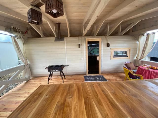Також є альтанка з барбекю, де можна провести приємний відпочинок з друзями. З барвистої тераси відкривається мальовничий краєвид.