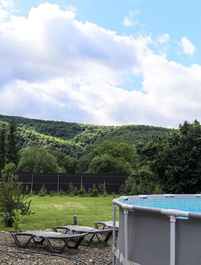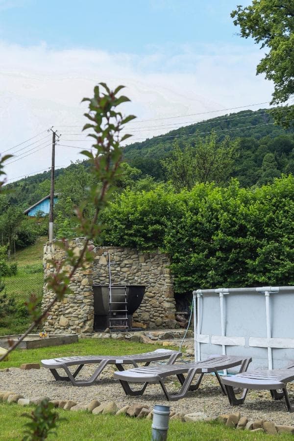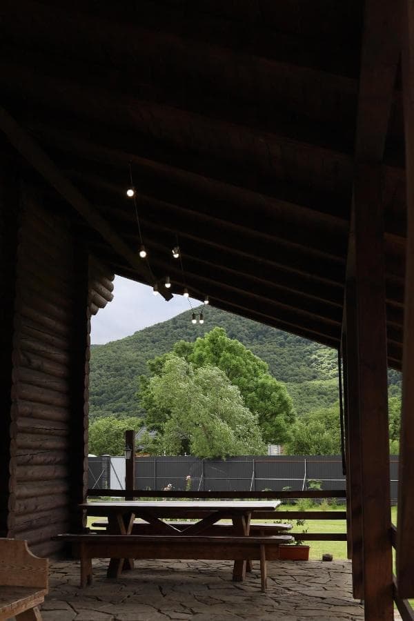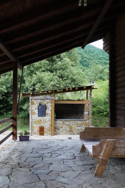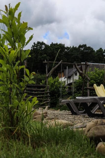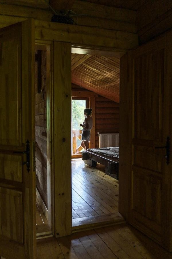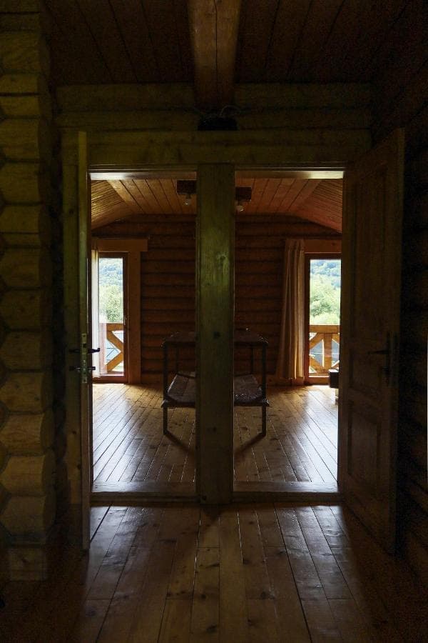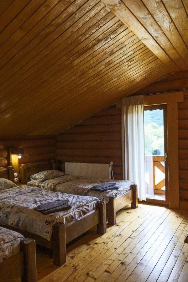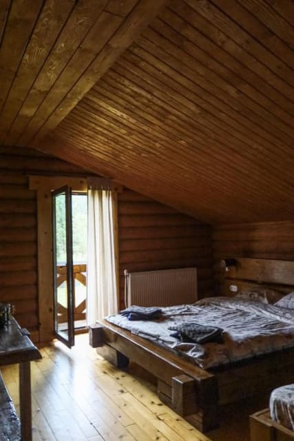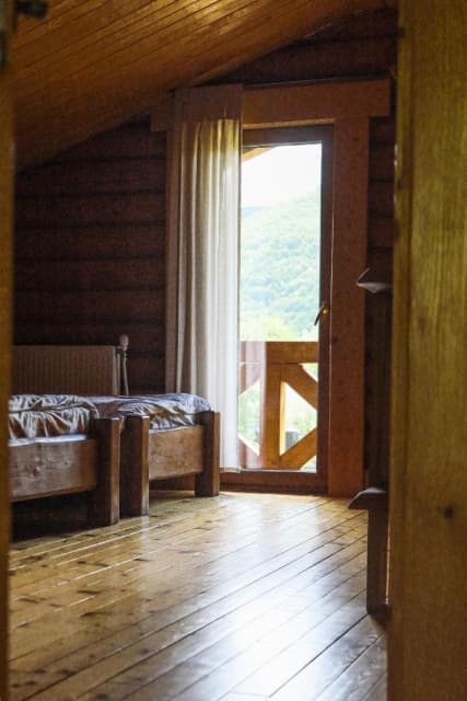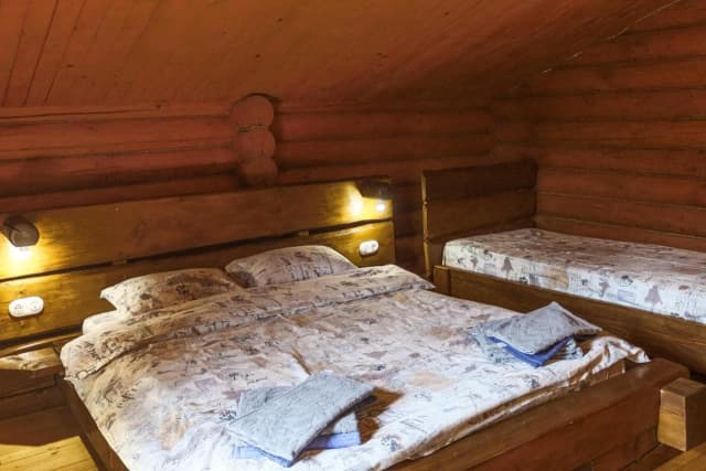 Дерев'яний котедж має 3 спальні на другому поверсі з виходом на балкон з видом на гори, а на першому поверсі - кухню з окремим виходом на терасу, вітальню і санвузол. Кухонна техніка включає все необхідне для самостійного приготування їжі, включаючи мікрохвильову піч, холодильник з морозильною камерою, електричну варильну поверхню та посуд. Номери обставлені дерев'яними меблями ручної роботи в сільському стилі.