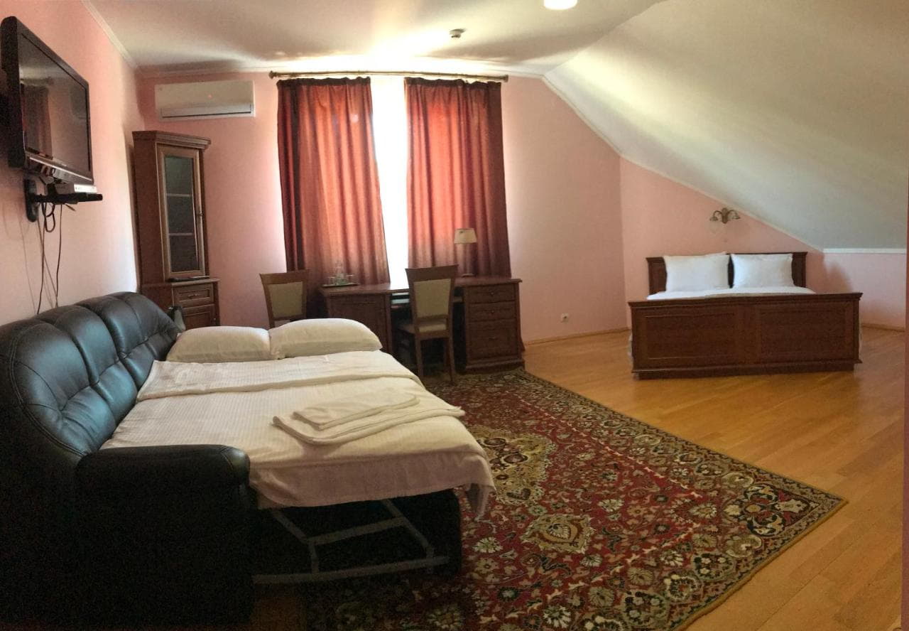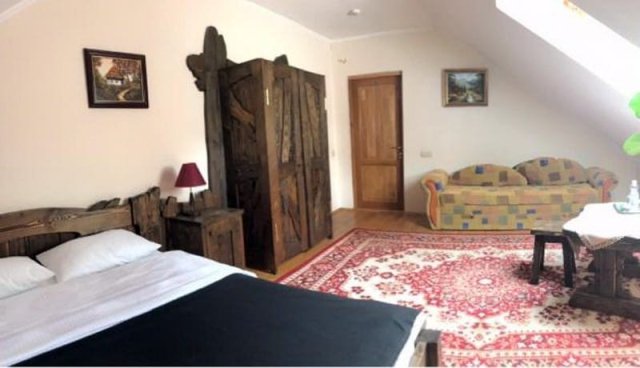 Покращені номери (напівлюкси) — більше простору та затишку. Додатково: м’який диван або зона відпочинку, холодильник, балкон із видом на гори чи ліс.