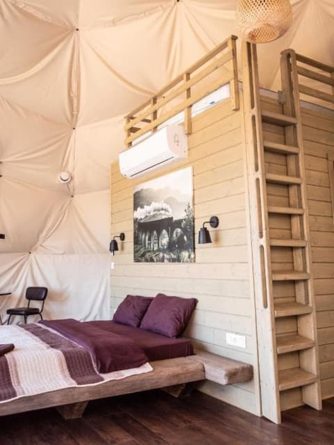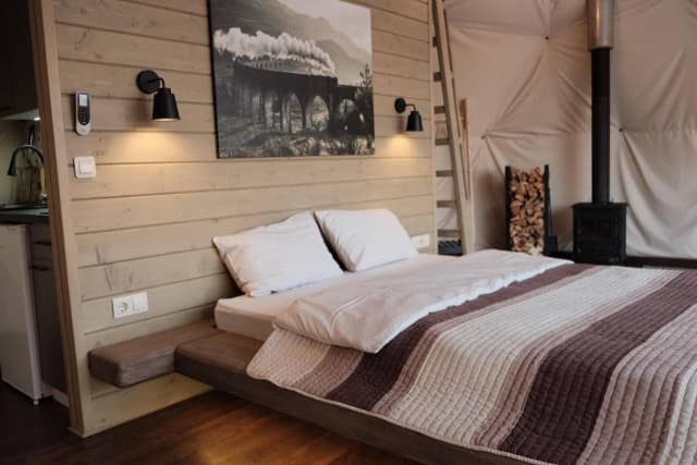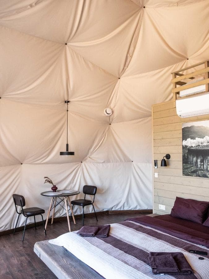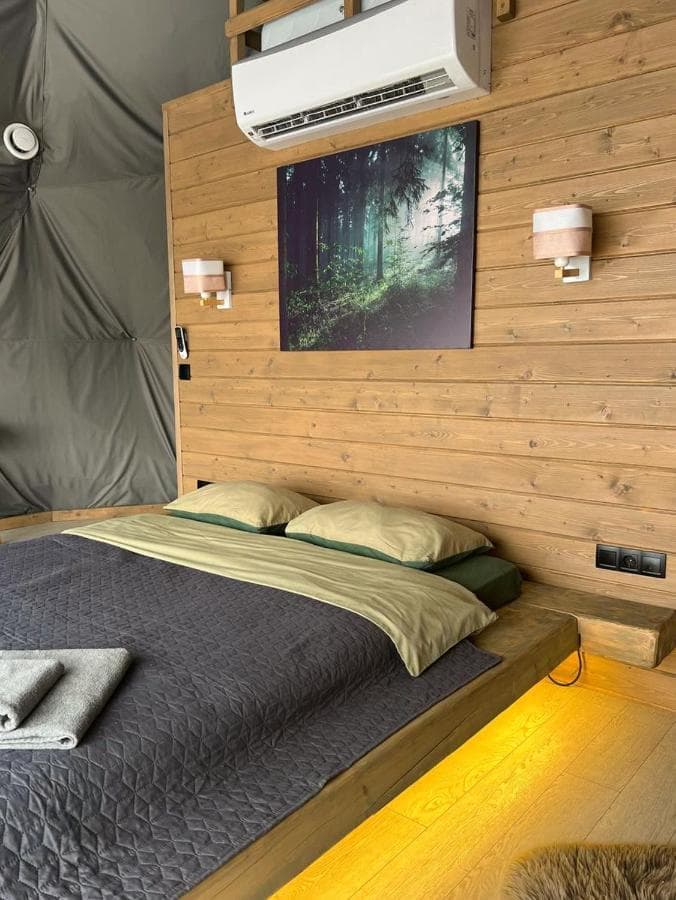 Глемпінг - це відпочинок на природі за принципом «ALL INCLUSIVE». Слово «глемпінг» дослівно означає «гламурний кемпінг» і означає розміщення гостей в комфортних умовах на природі. Територія обладнана всім необхідним для повноцінного відпочинку та комфортного життя (wifi, кондиціонер, піч, камін, душ, кухня). Глемпінг зберігає всі основні завдання відпочинку на природі, водночас відкриваючи можливості для більш приємного відпочинку.