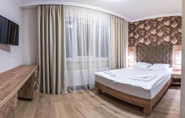 В номерах готелю: двоспальне ліжко, письмовий стіл, телевізор з плоским екраном (постільна білизна та рушники у всіх номерах). Санвузол (душова кабіна, туалет, умивальник, фен). Тераса.